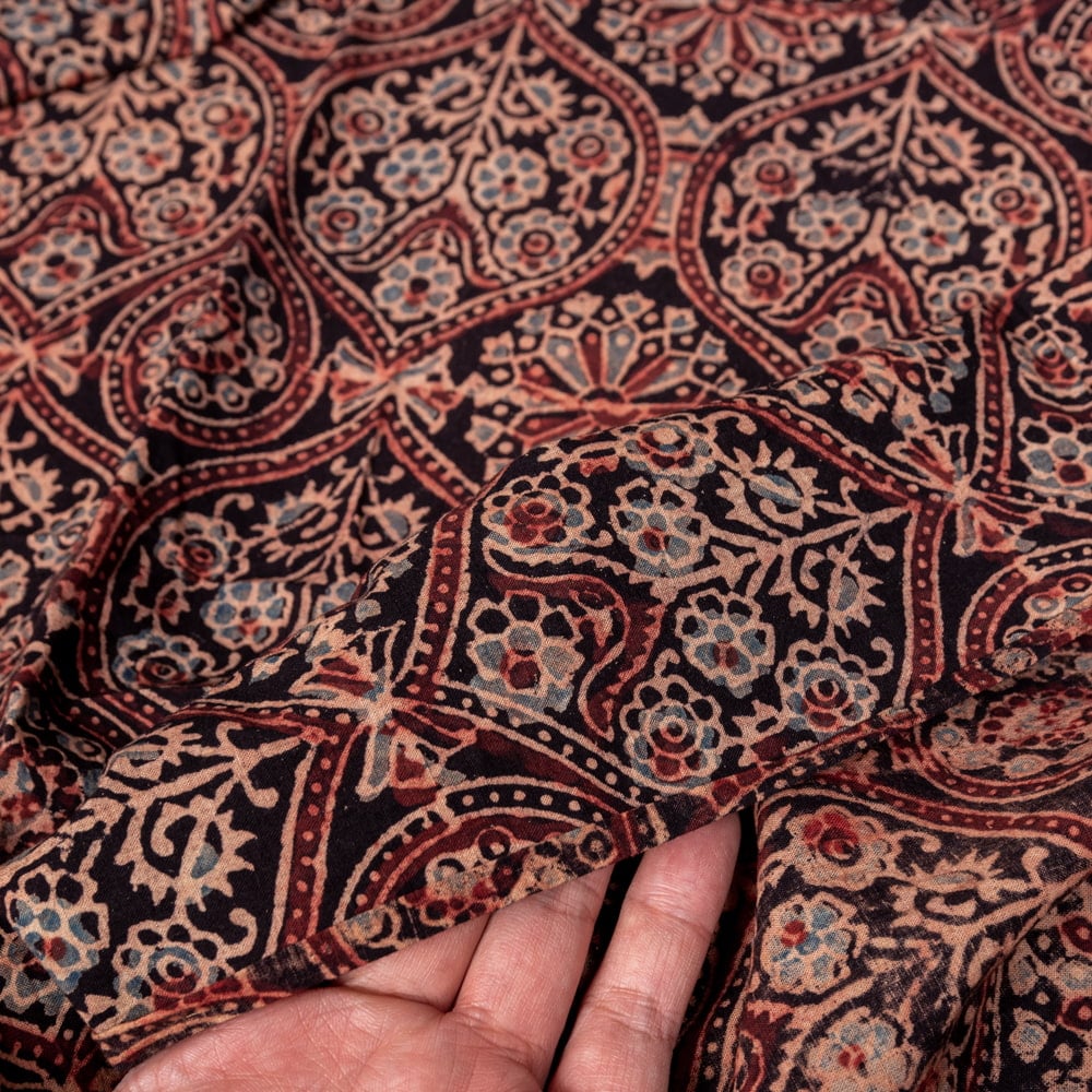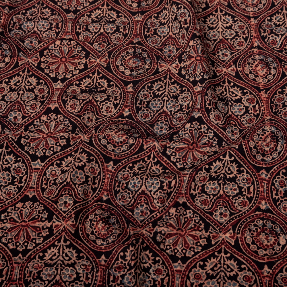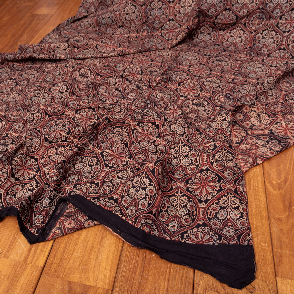 〔1m単位切り売り〕アジュラックプール村からやってきた 昔ながらの木版染めアジュラックデザインの伝統模様布〔幅約109cm〕 - ブラック系 通販店