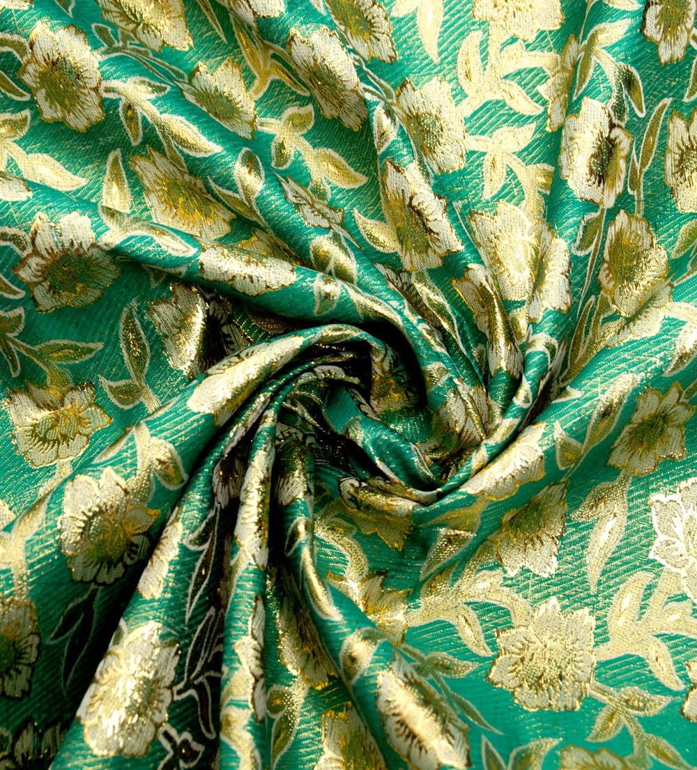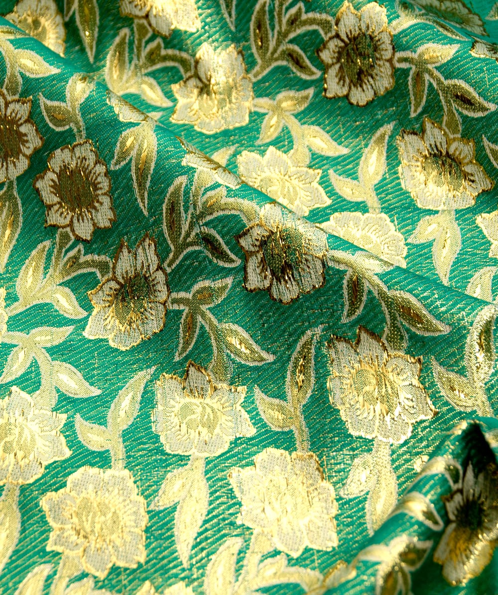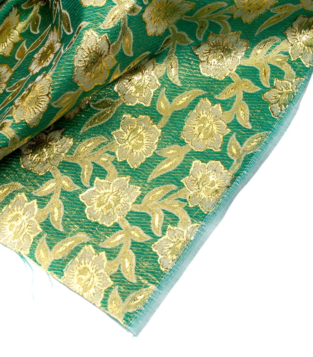〔1m単位切り売り〕インドの金糸入り伝統模様布〔113cm〕 - グリーン 通販店