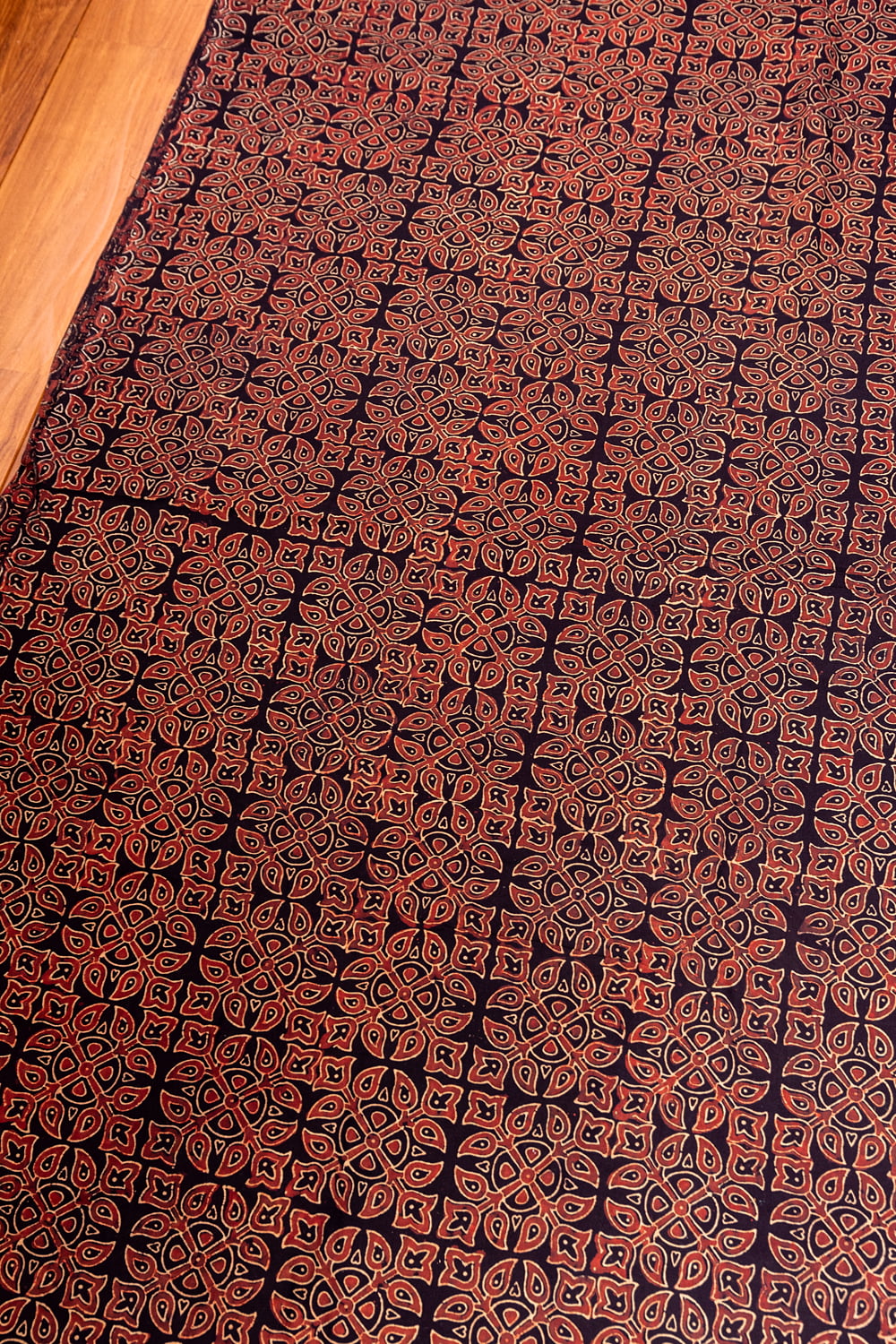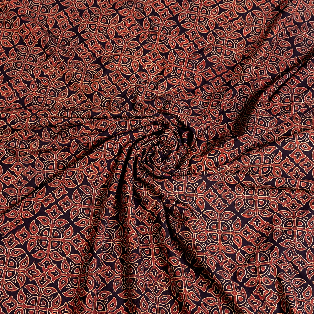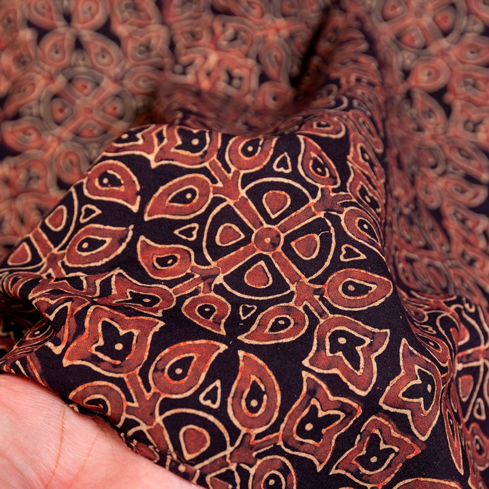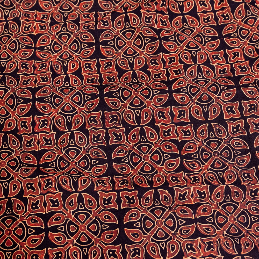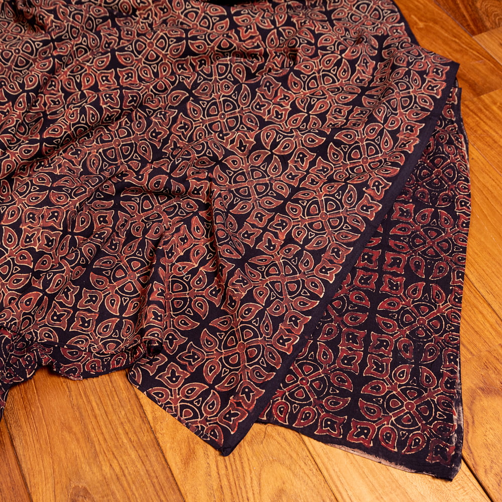 〔約5m 長尺布】伝統息づくインドから 昔ながらの木版染めアジュラックデザインの伝統模様布〔横幅:約112cm〕 通販店