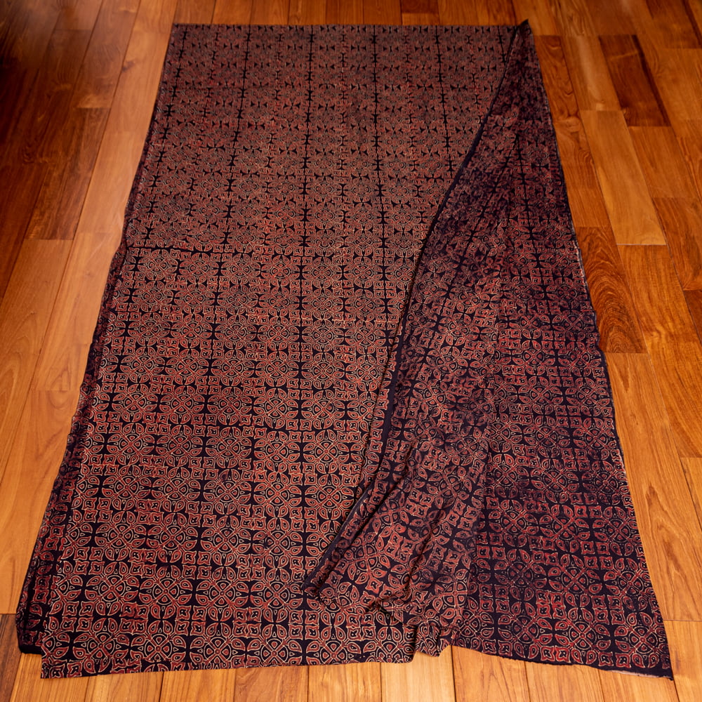 〔約5m 長尺布】伝統息づくインドから 昔ながらの木版染めアジュラックデザインの伝統模様布〔横幅:約112cm〕