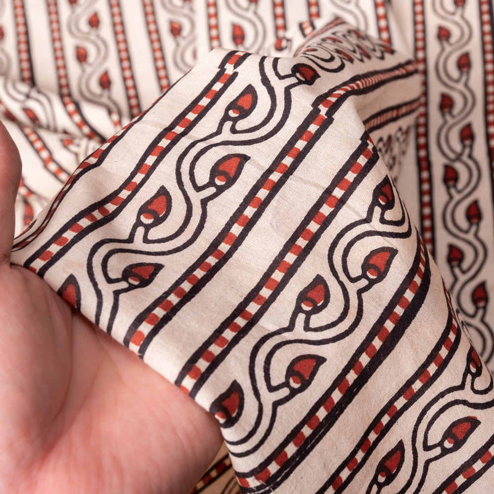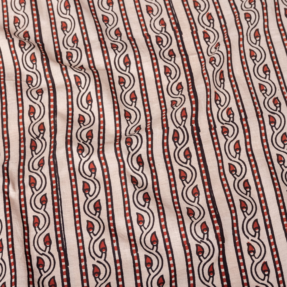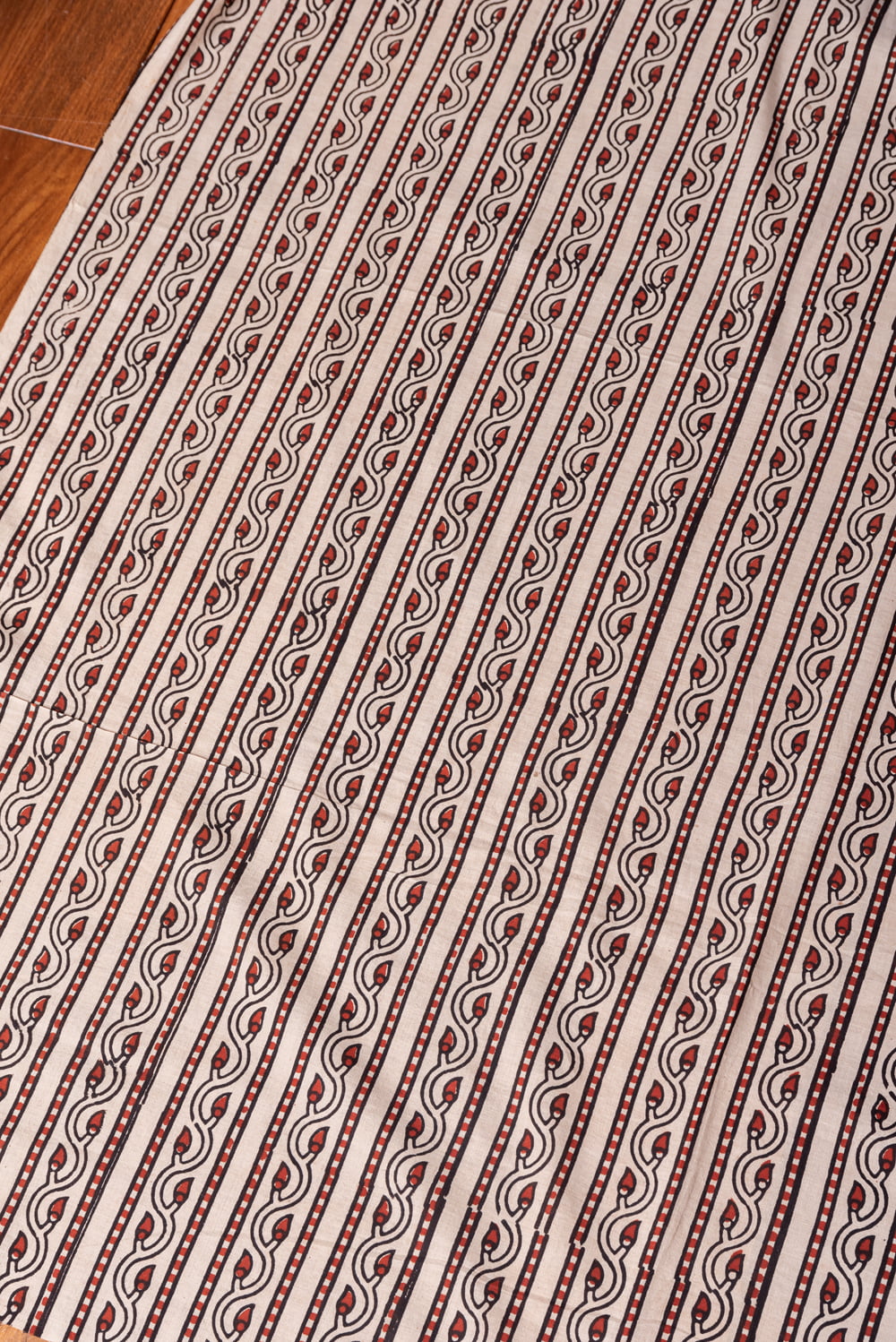 〔1m単位切り売り〕伝統息づく南インドから 昔ながらの木版染め更紗模様布 - 蔦模様〔横幅:約113.5cm〕