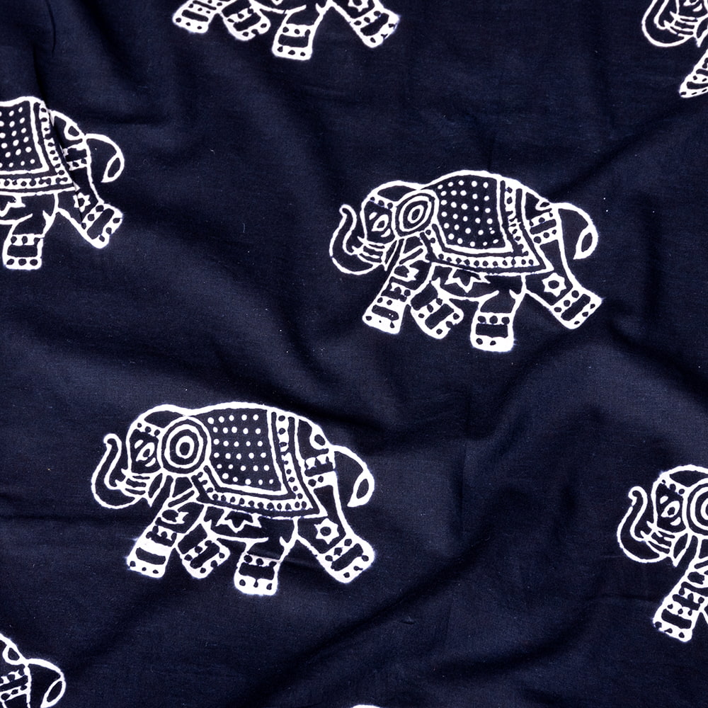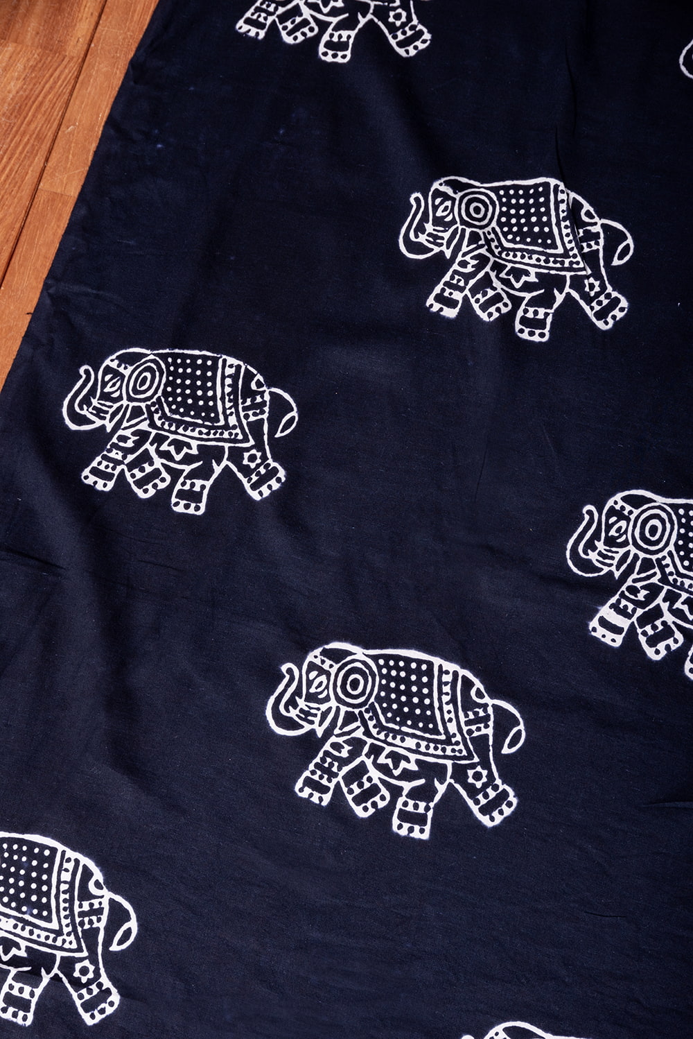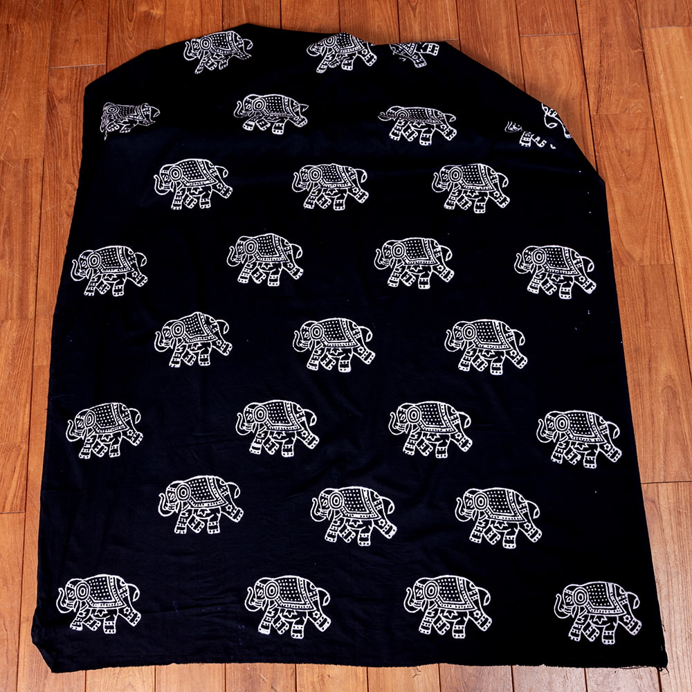 〔1m単位切り売り〕伝統の木版染め シンプルでかわいい動物デザイン布 象さん ブラック系〔幅約107cm〕 x 3個
