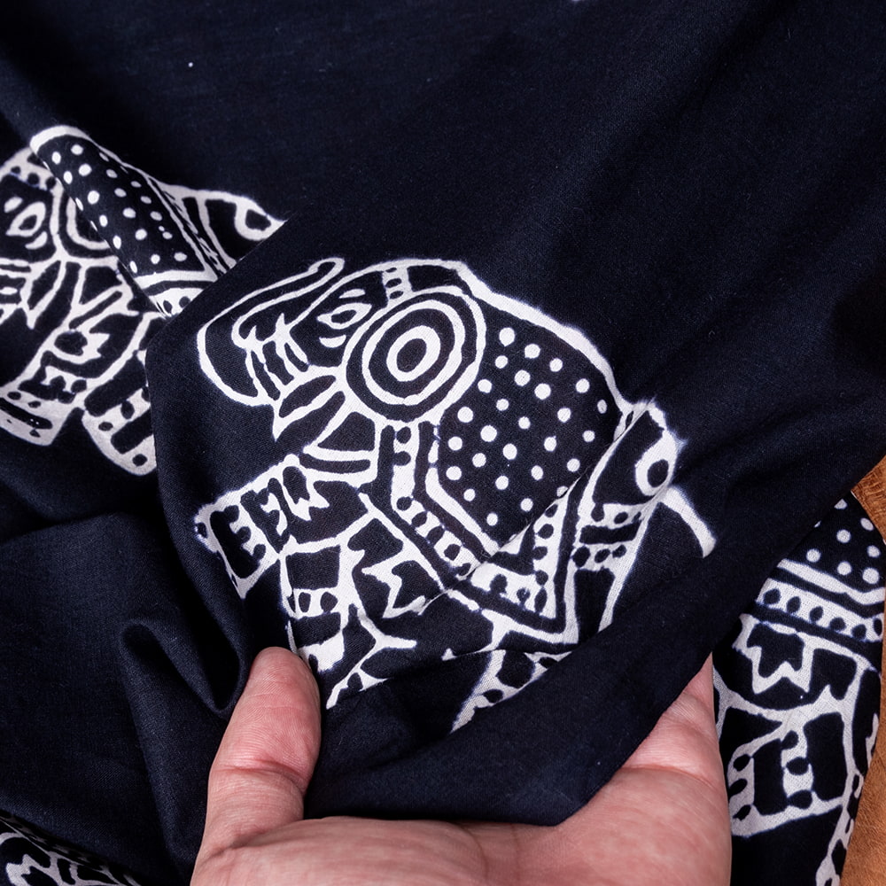 【3個セット】〔1m単位切り売り〕伝統の木版染め シンプルでかわいい動物デザイン布 象さん ブラック系〔幅約107cm〕