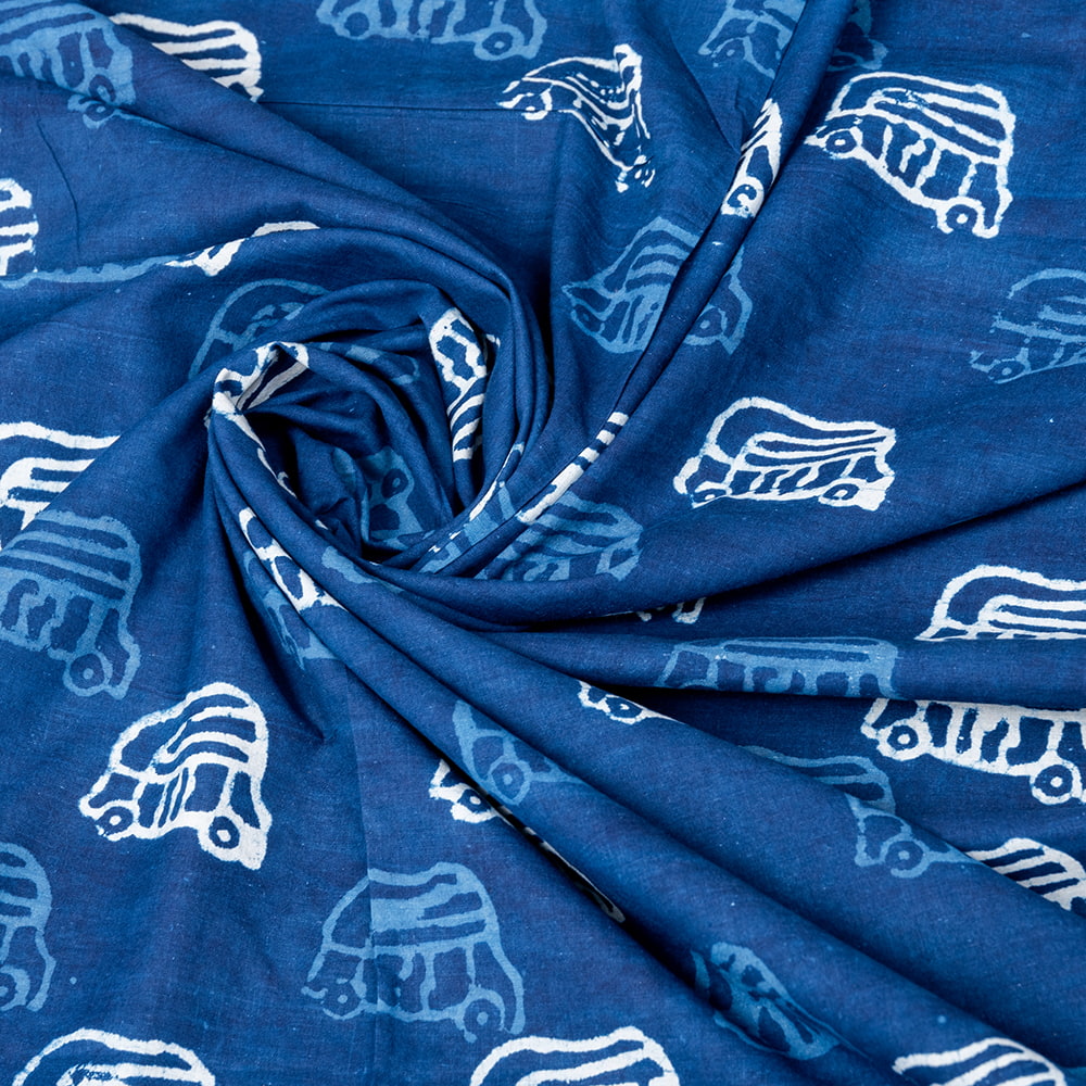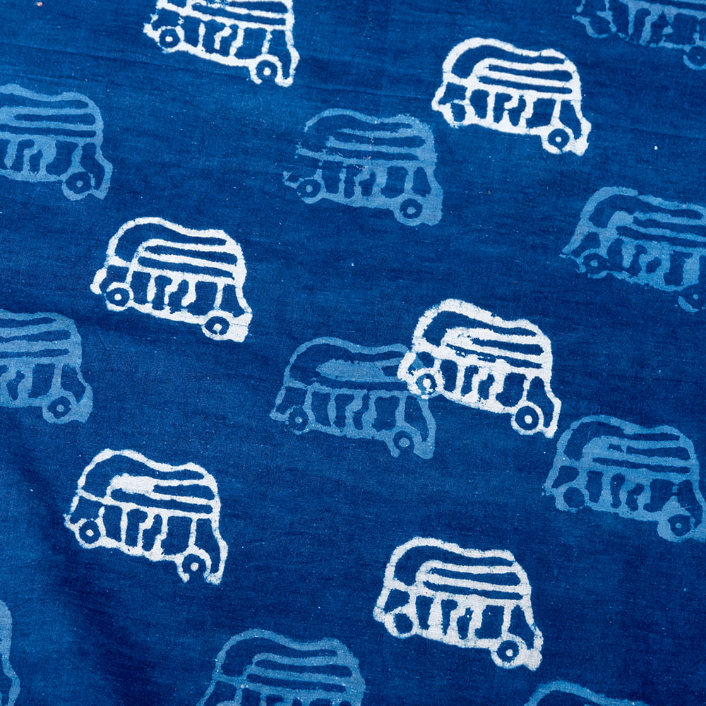 【3個セット】〔1m単位切り売り〕インドの伝統息づく 昔ながらの木版インディゴ藍染布 象さん ネイビー系〔幅約107cm〕