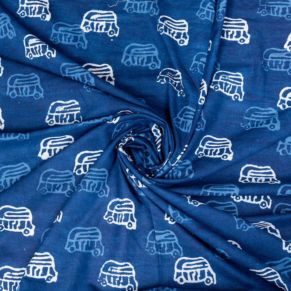 〔1m単位切り売り〕インドの伝統息づく 昔ながらの木版インディゴ藍染布 オートリキシャ ネイビー系〔幅約107cm〕 x 3個