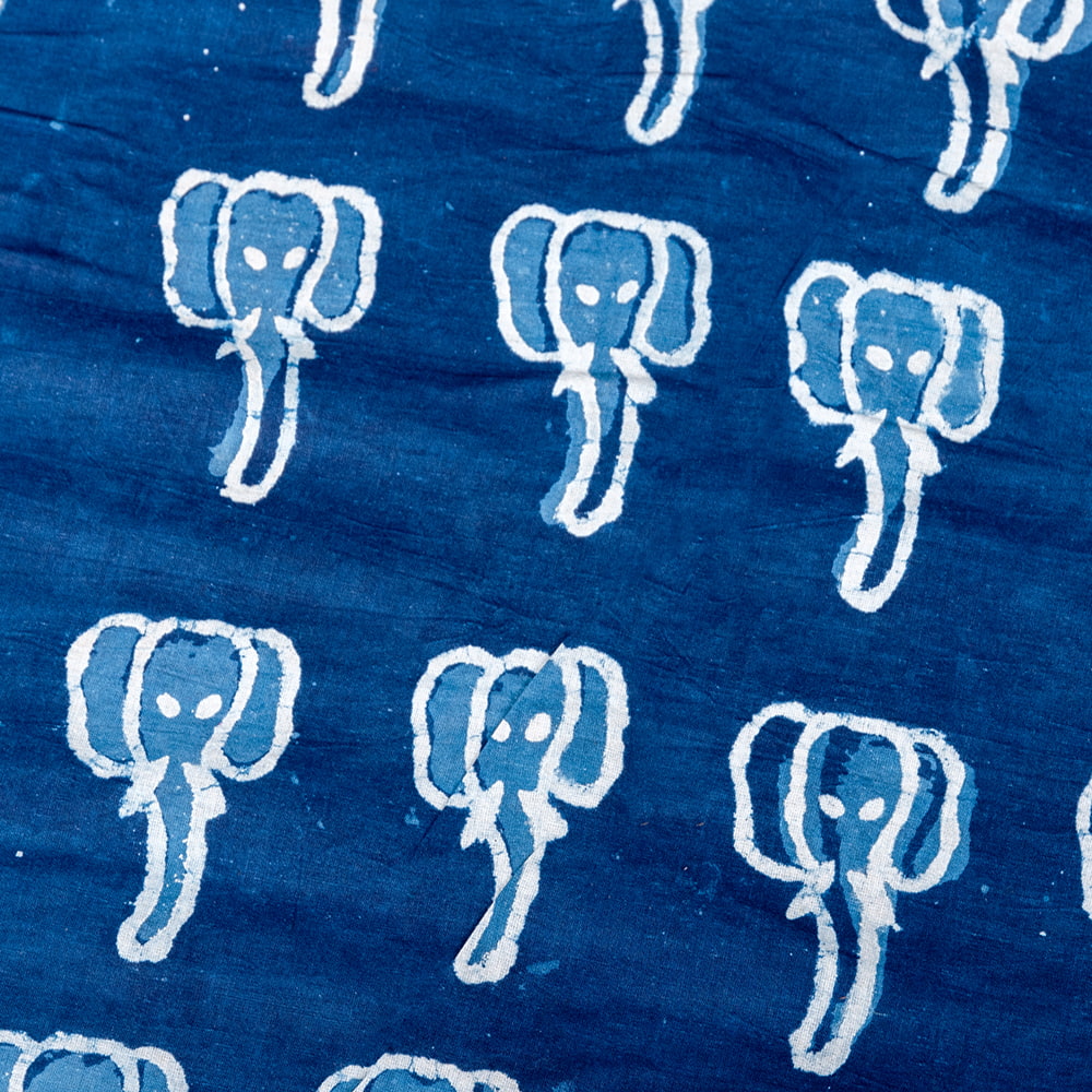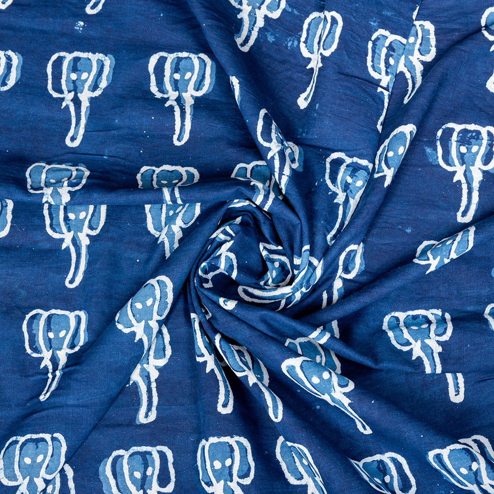 【3個セット】〔1m単位切り売り〕インドの伝統息づく 昔ながらの木版インディゴ藍染布 象さん ネイビー系〔幅約110cm〕