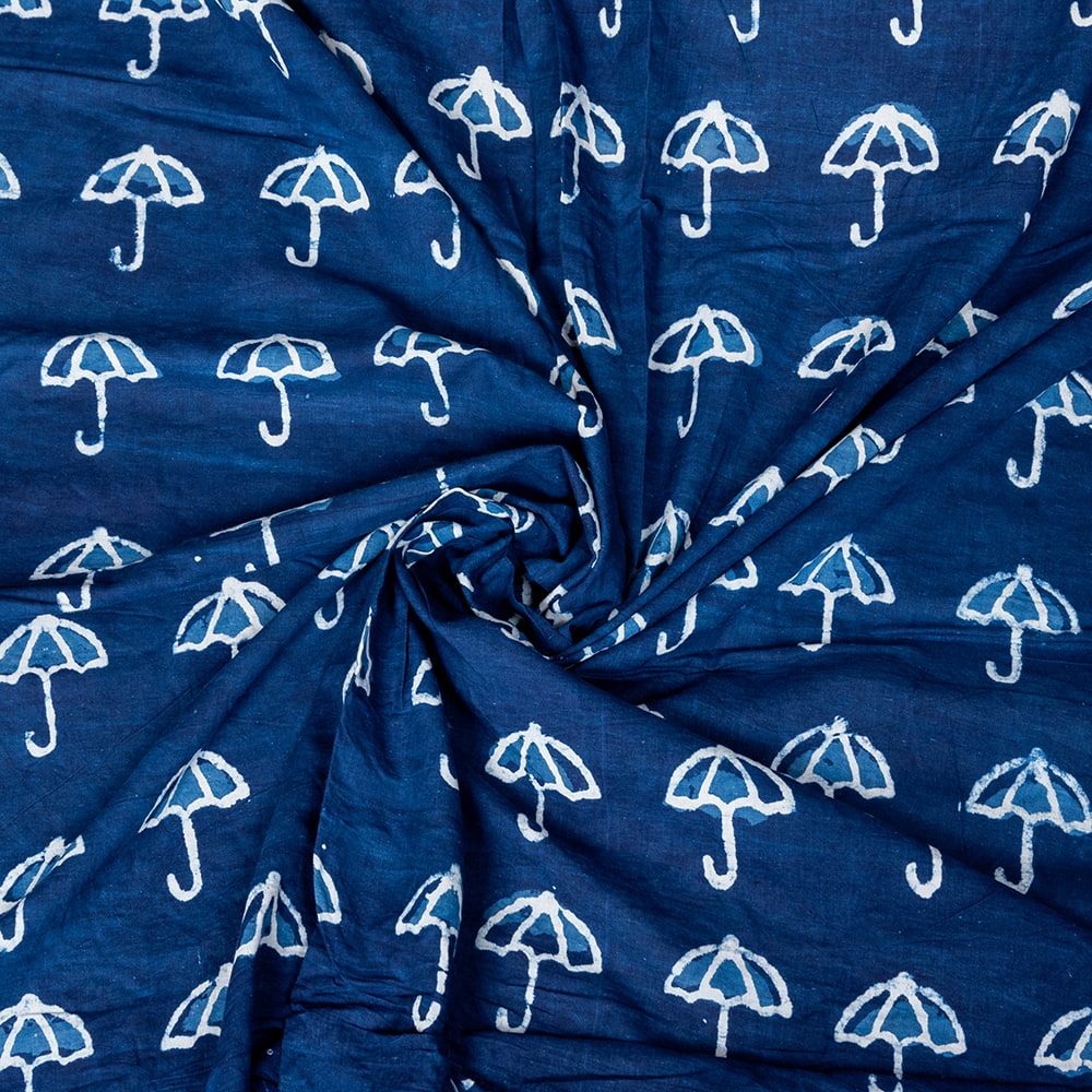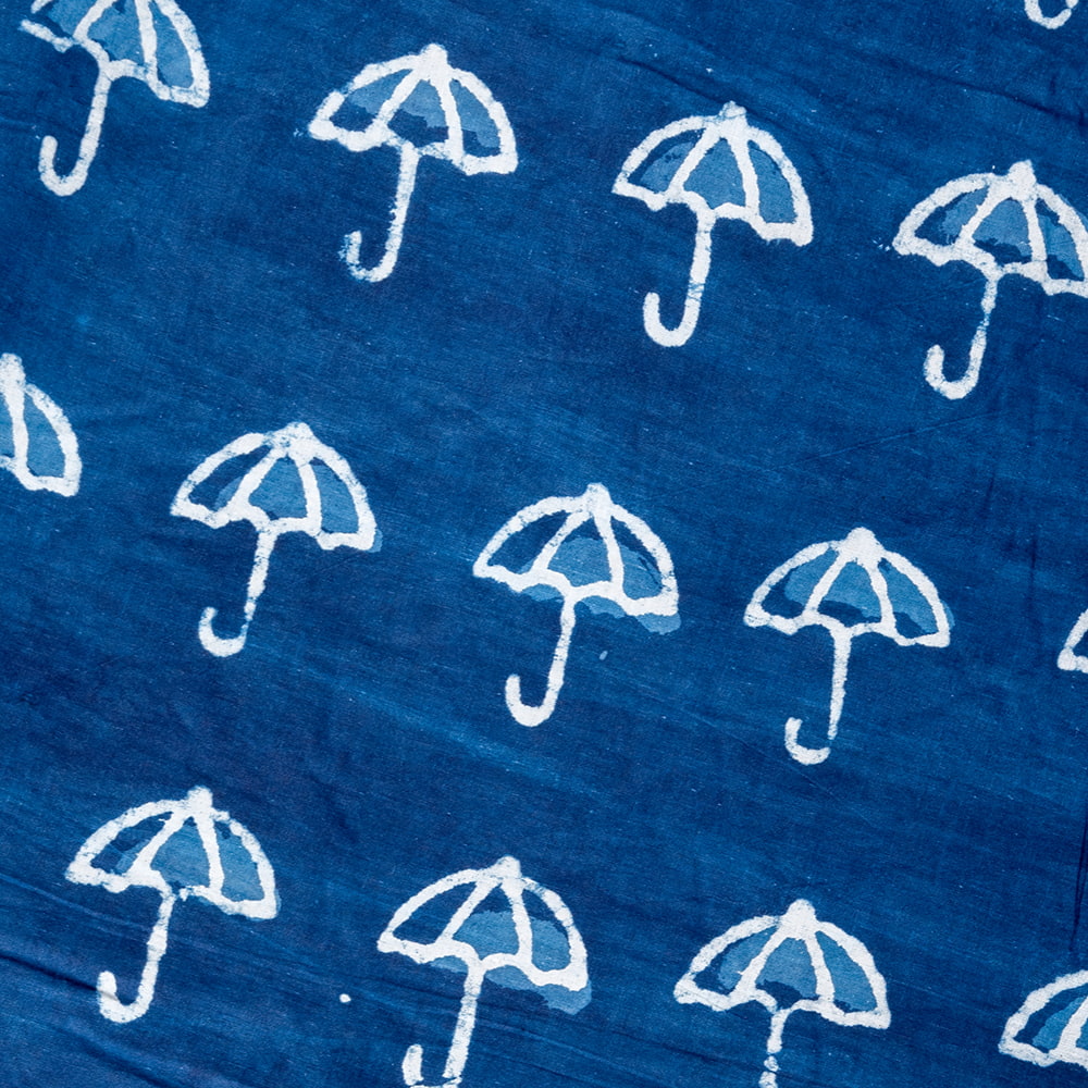 【3個セット】〔1m単位切り売り〕インドの伝統息づく 昔ながらの木版インディゴ藍染布 パラソル ネイビー系〔幅約110cm〕
