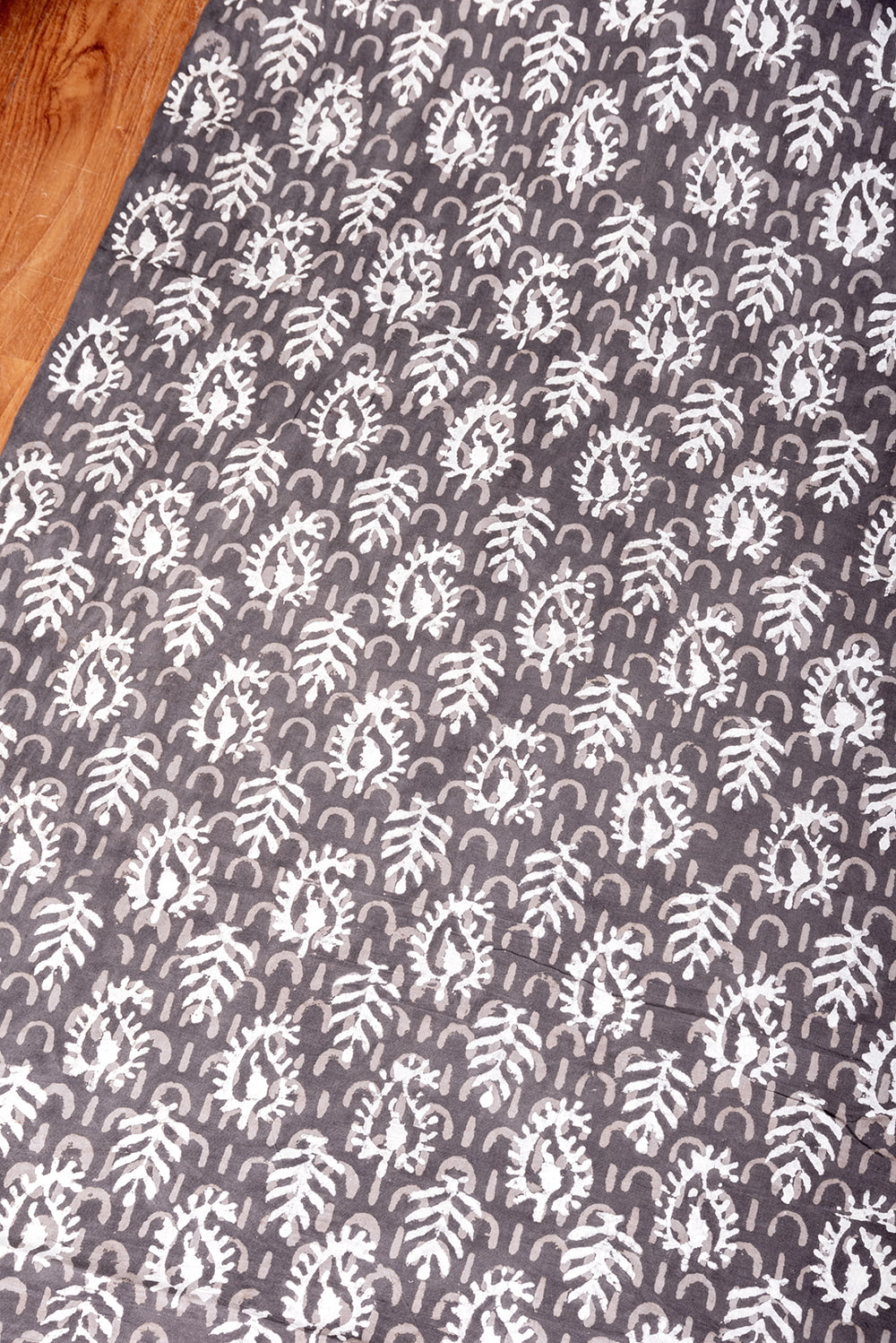 【3個セット】〔1m単位切り売り〕昔ながらの木版泥染め ダブプリント グレー系〔幅約115cm〕の商品写真 6枚目 インドならではの風合い