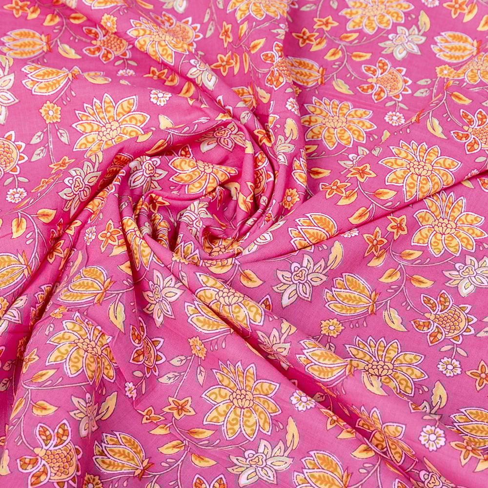 【3個セット】〔1m単位切り売り〕テキスタイルの伝統息づくインドから 昔ながらの小花柄布 ピンク系〔幅約108cm〕