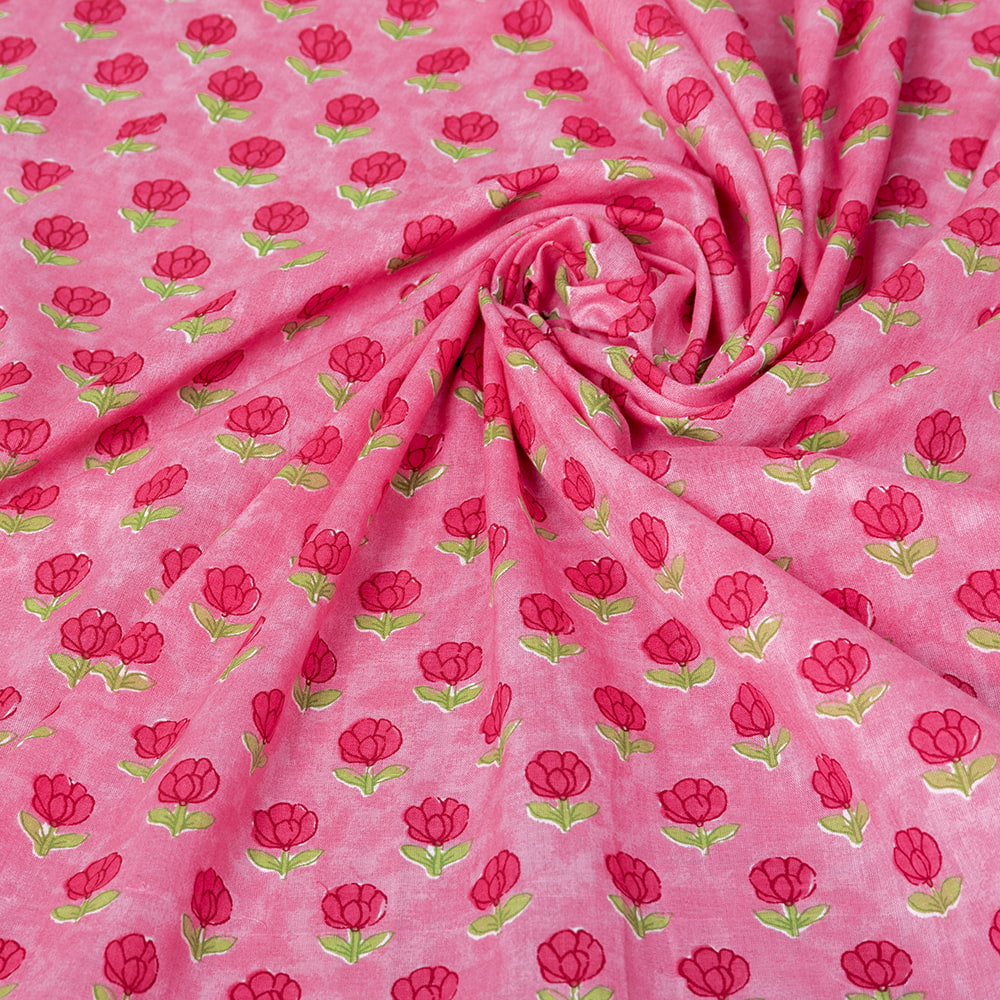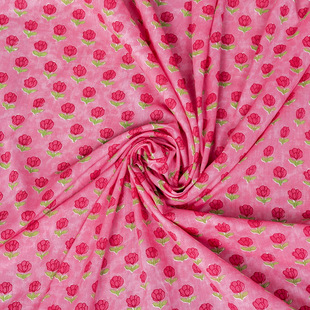 【3個セット】〔1m単位切り売り〕テキスタイルの伝統息づくインドから 昔ながらの小花柄布 ピンク系〔幅約107cm〕