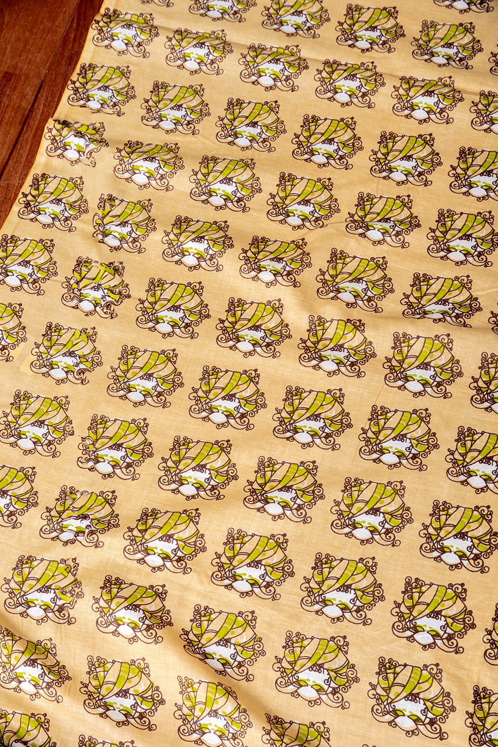 〔1m単位切り売り〕インドの伝統と不思議が融合 おもしろデザイン布 ターバンおじさま柄〔幅約109cm〕 x 3個