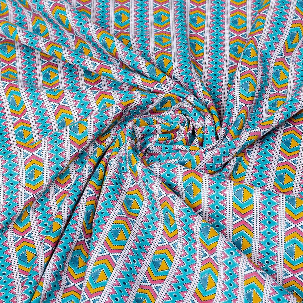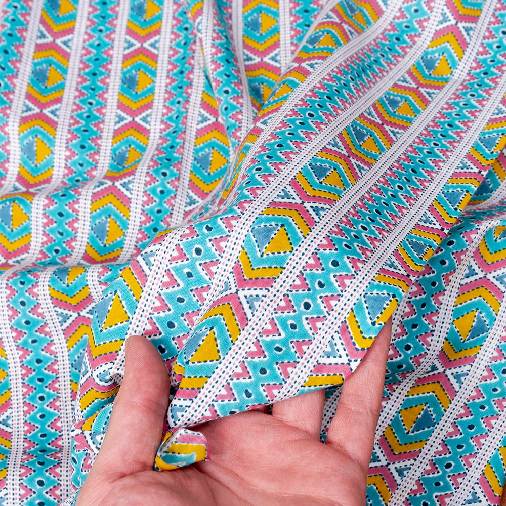 【3個セット】〔1m単位切り売り〕テキスタイルの伝統息づくインドから エスニックなストライプ布 青緑系〔幅約107cm〕