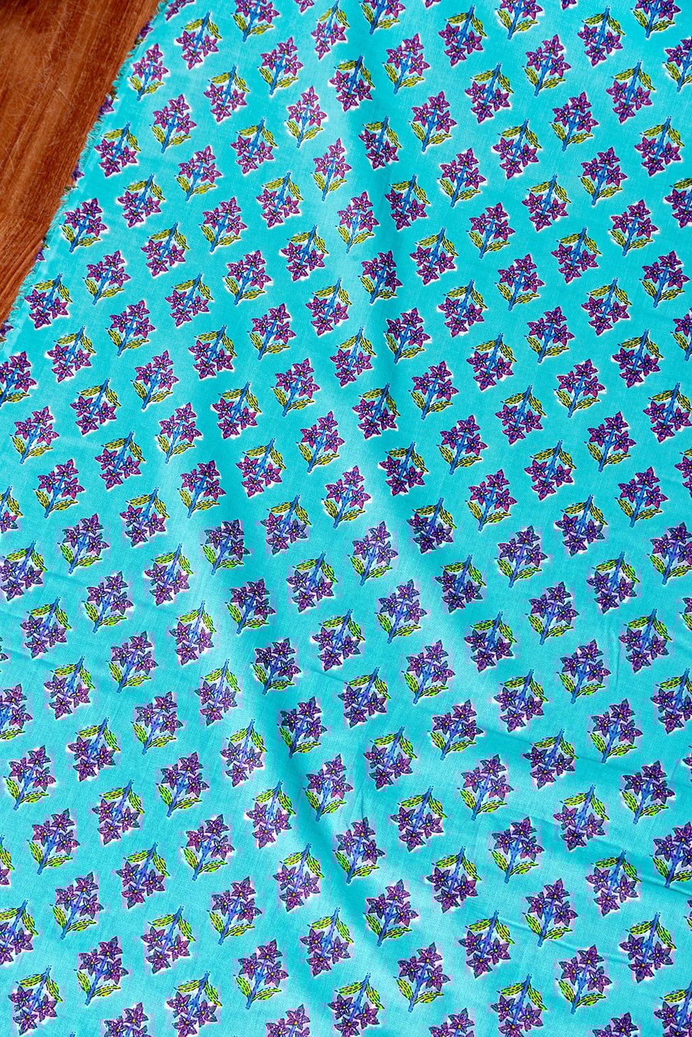 〔1m単位切り売り〕テキスタイルの伝統息づくインドから 昔ながらの小花柄布 青緑系〔幅約105cm〕 x 3個