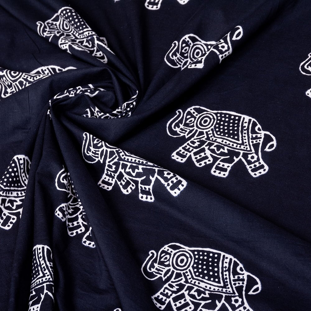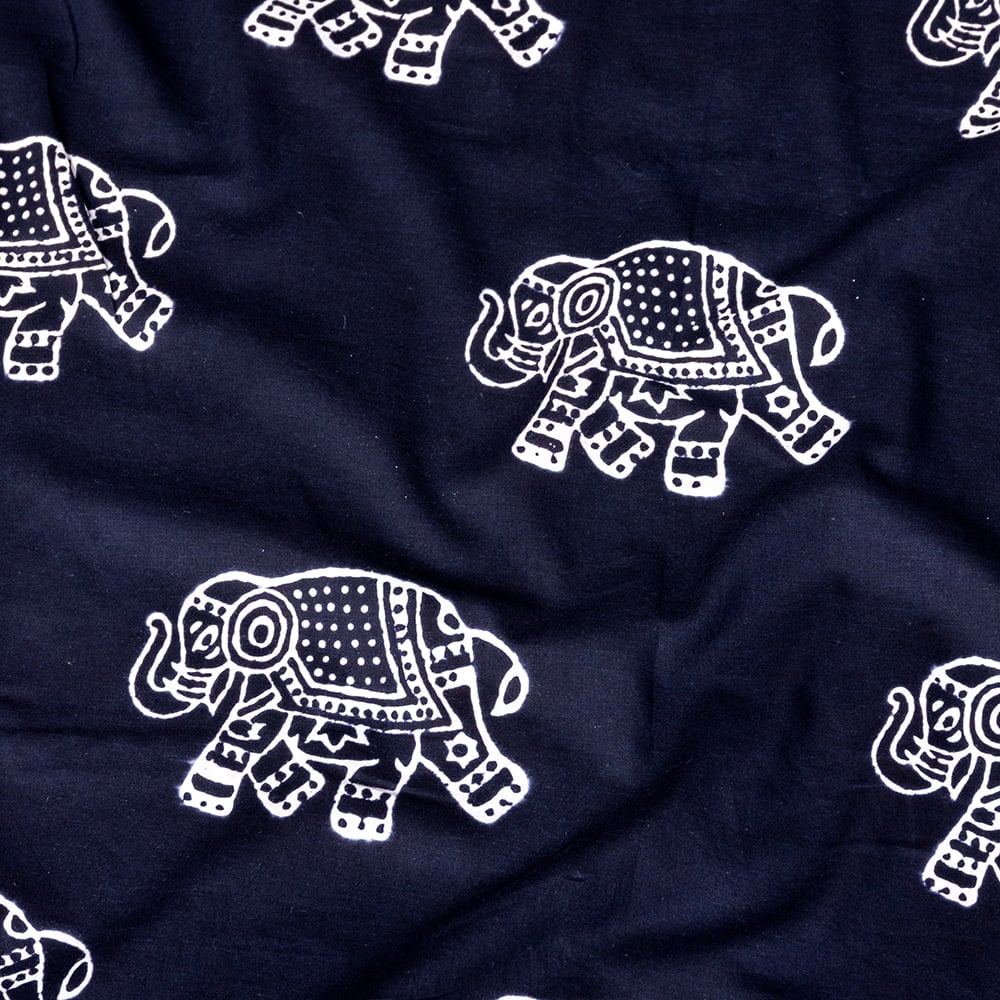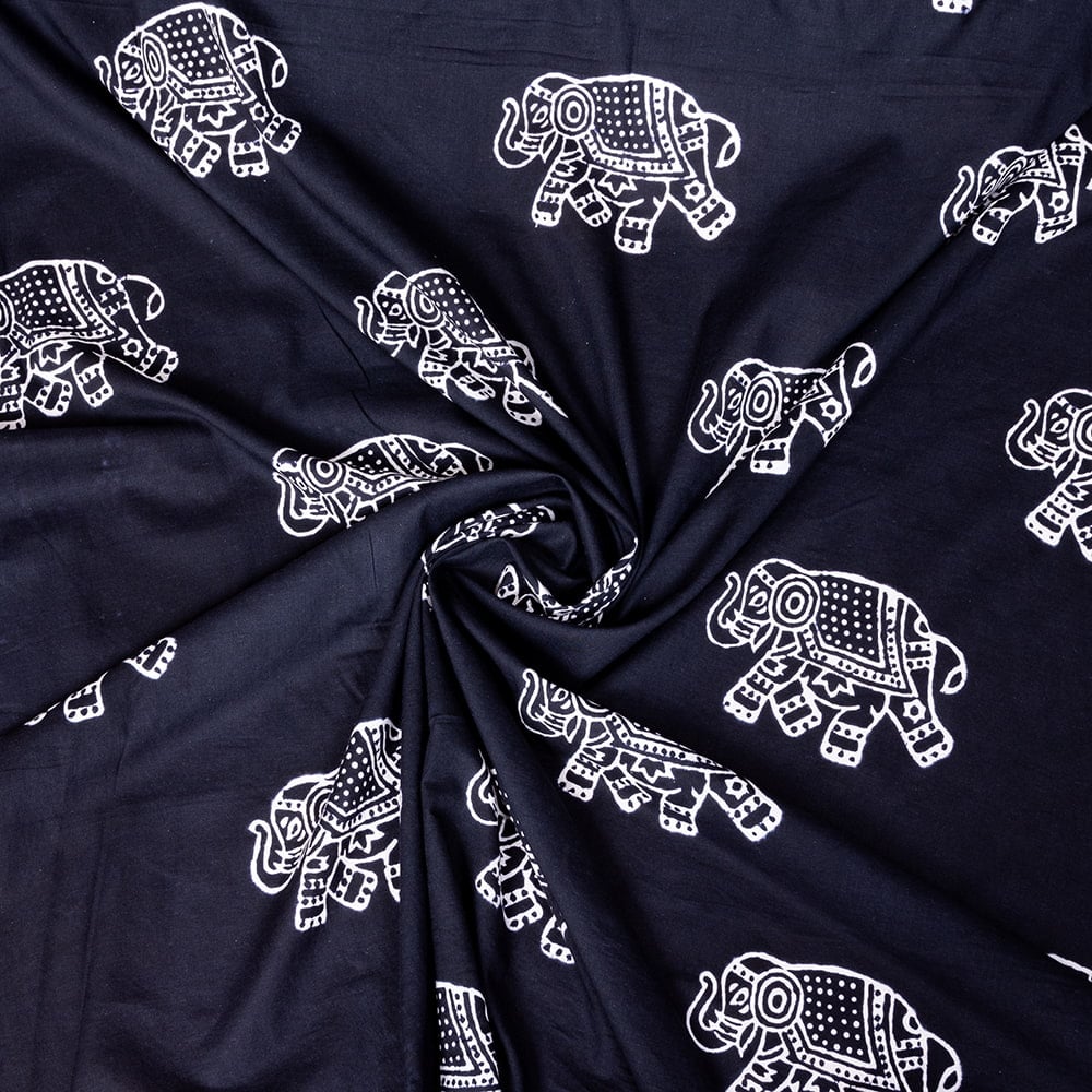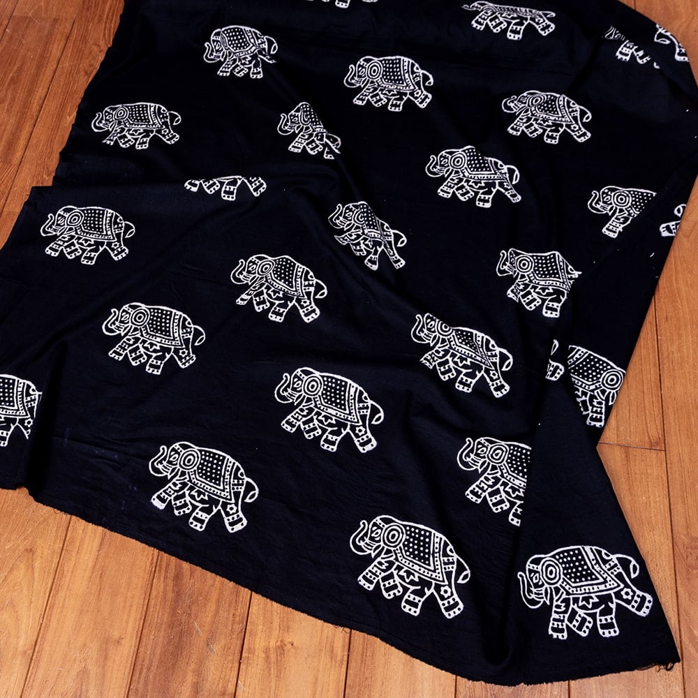 【5個セット】〔1m単位切り売り〕伝統の木版染め シンプルでかわいい動物デザイン布 象さん ブラック系〔幅約107cm〕