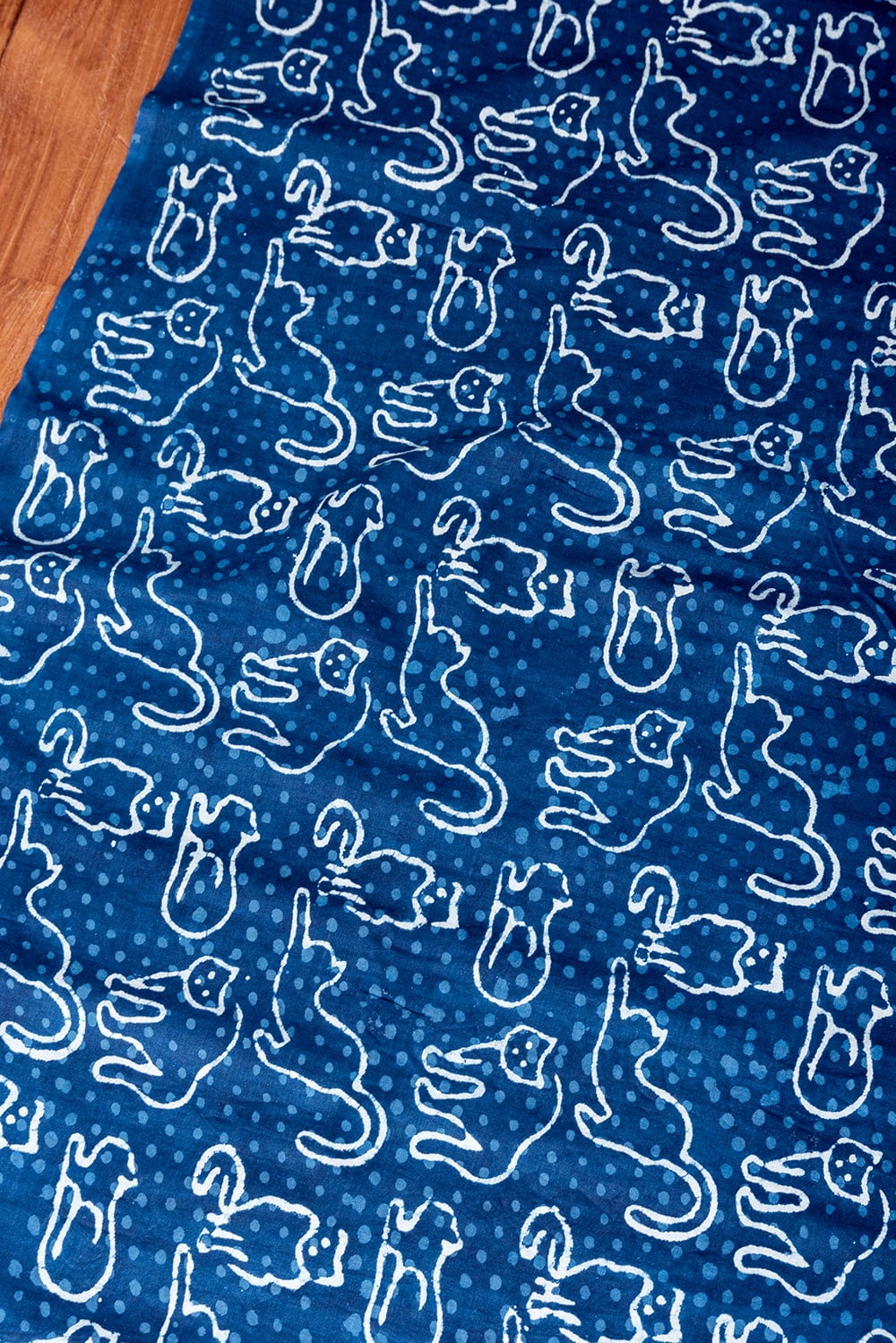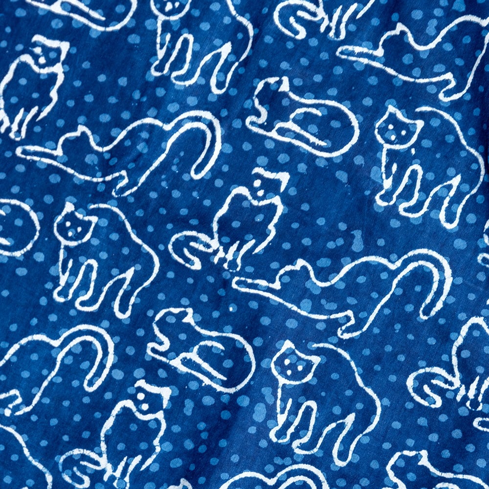 〔1m単位切り売り〕インドの伝統息づく 昔ながらの木版インディゴ藍染布 猫 ネイビー系〔幅約113cm〕 x 5個