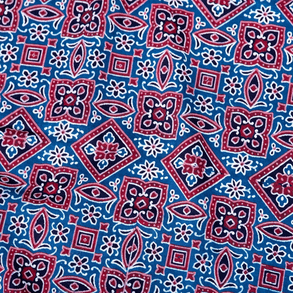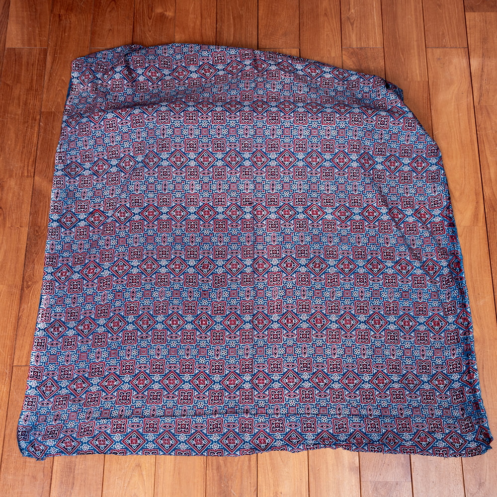 そのルーツを4000年以上遡ると言われている、アジュラック布。パキスタン シンド州からインド カッチ地方にかけて作られてきました。インダス文明の都市、モヘンジョダロ(紀元前2500年?紀元前1800年)で出土した司祭王の有名な石像にも、アジュラック布が使われていた痕跡が残っています。石像の、肩からかけられているショールに、アジュラック独自のモチーフが彫られていました。