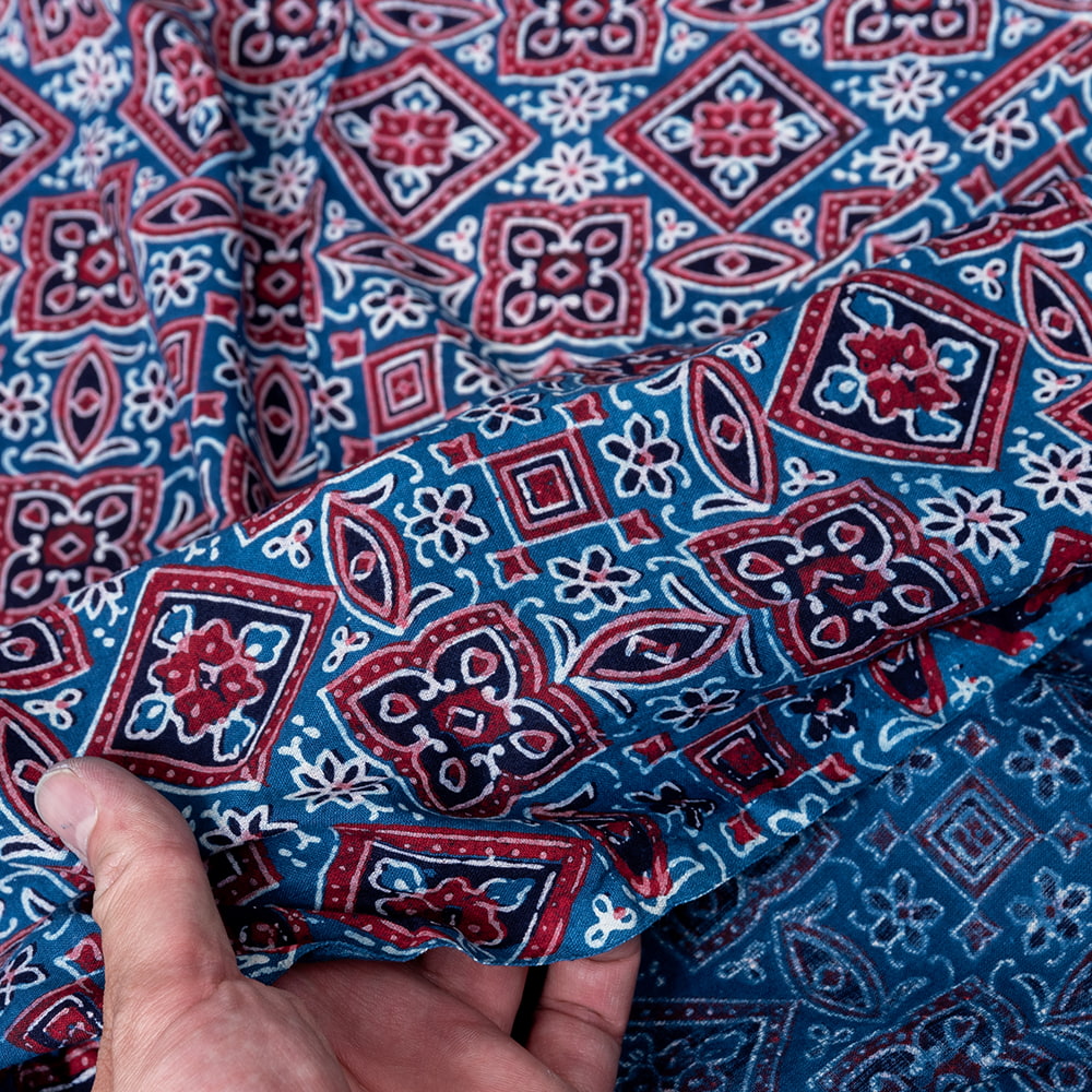 〔1m単位切り売り〕伝統アジュラックデザイン布 インディゴ染め ネイビー系〔幅約109cm〕 x 5個