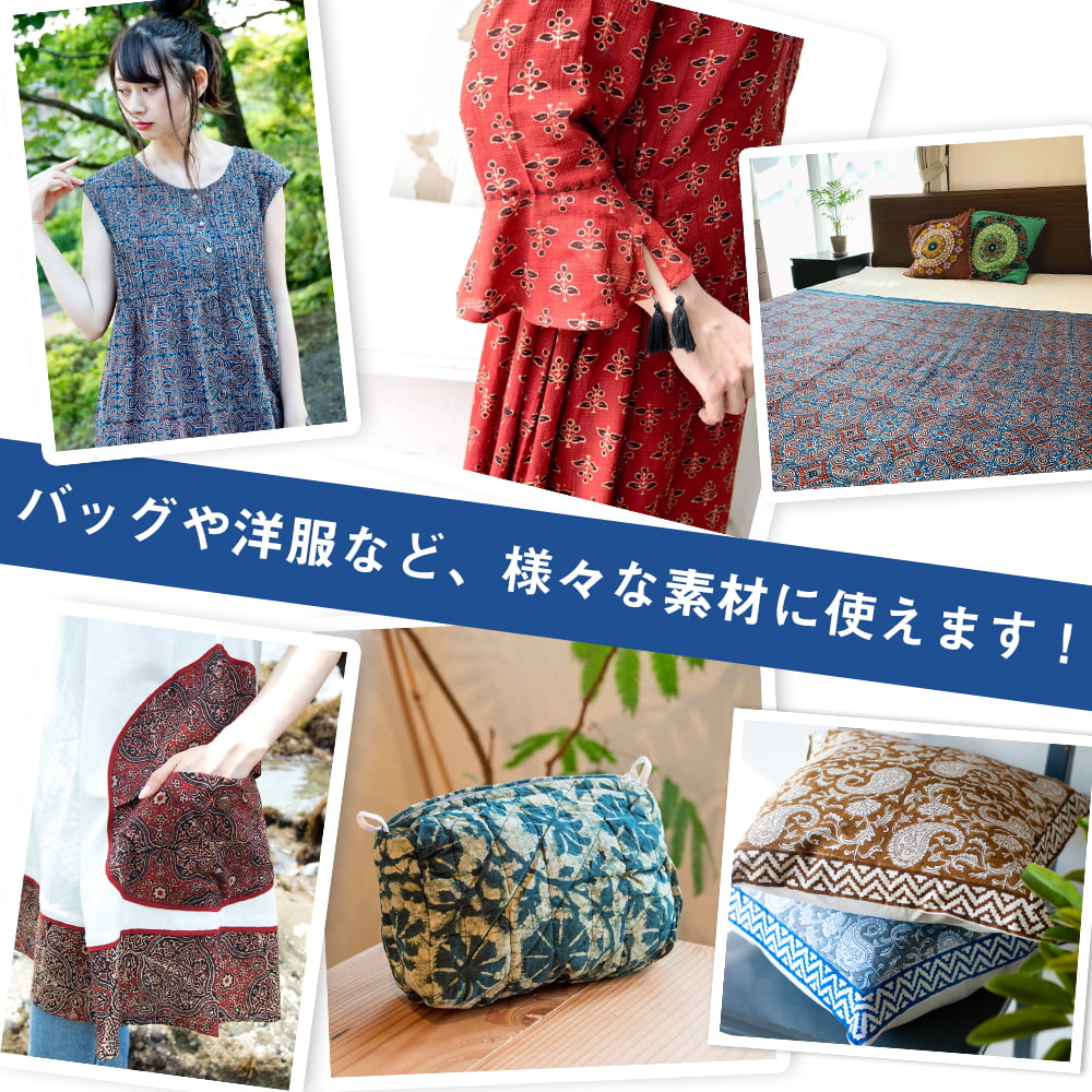 インディゴとの青による色合いが美しく、模様もとても美しいこちらの布。手芸用の布としてはもちろんインテリア用のカバーや飾り布として様々な場所でお使いいただけます。ソファカバーやカーテン、テーブルクロス等々色々な使いみちが考えられますね。ナチュラルな風合いが良いので、オリジナルのスカーフや壁飾りにしても素敵です。■便利な計り売り!