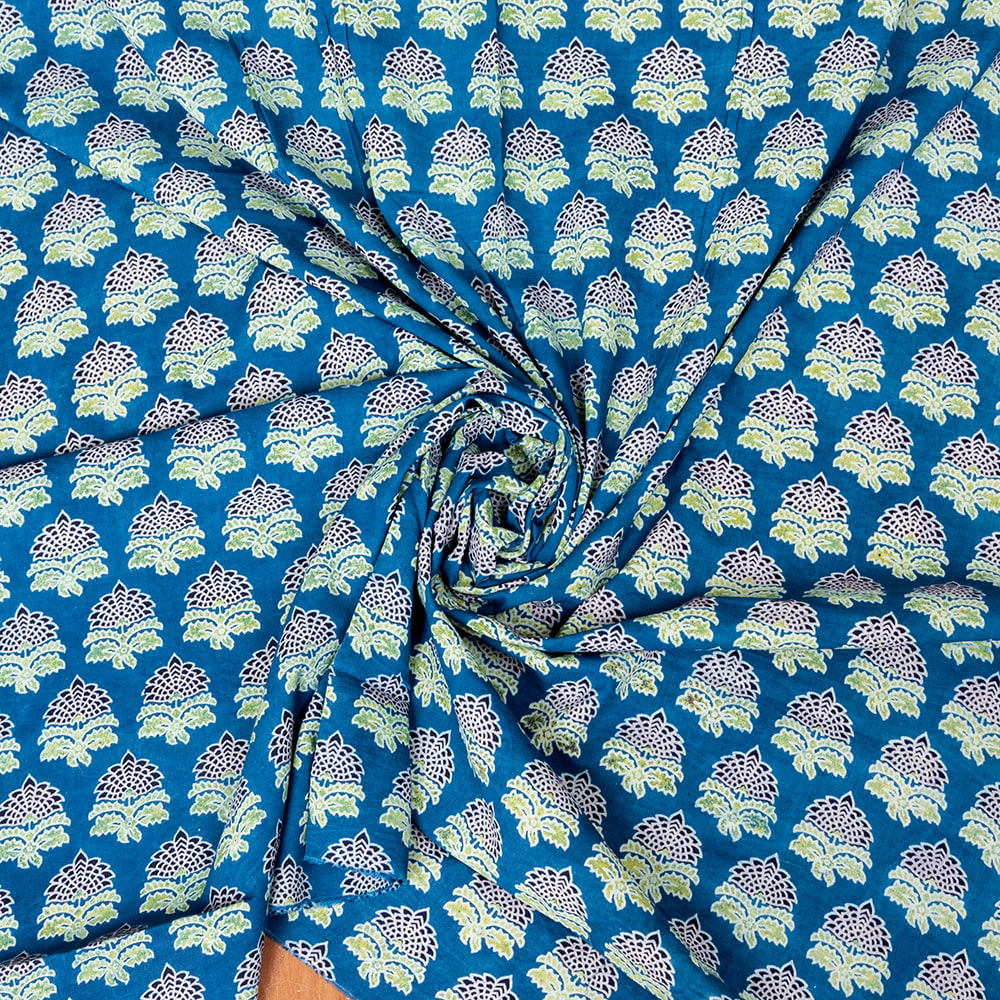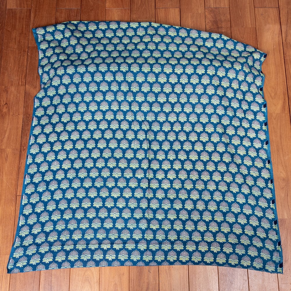インドらしい伝統的な模様にインディゴの美しい青がマッチングした素敵な布です。インディゴならではの深みのある落ち着いた風合いは見ていて決して飽きることがありません。そんなインディゴの青をベースに、インドらしいボタニカル柄がプリントされており、とても素敵な生地です。