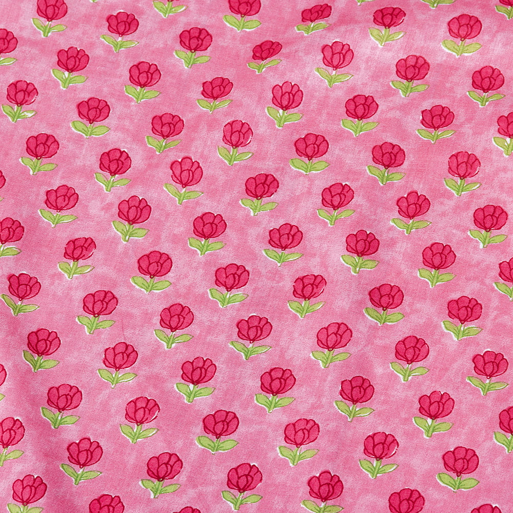 【5個セット】〔1m単位切り売り〕テキスタイルの伝統息づくインドから 昔ながらの小花柄布 ピンク系〔幅約107cm〕