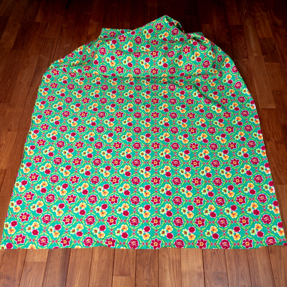 【3個セット】〔1m単位切り売り〕アジアのレトロ花柄ファブリック 生地 東北大花布 ヴィンテージ風 昭和レトロ〔約160cm〕 - グリーン