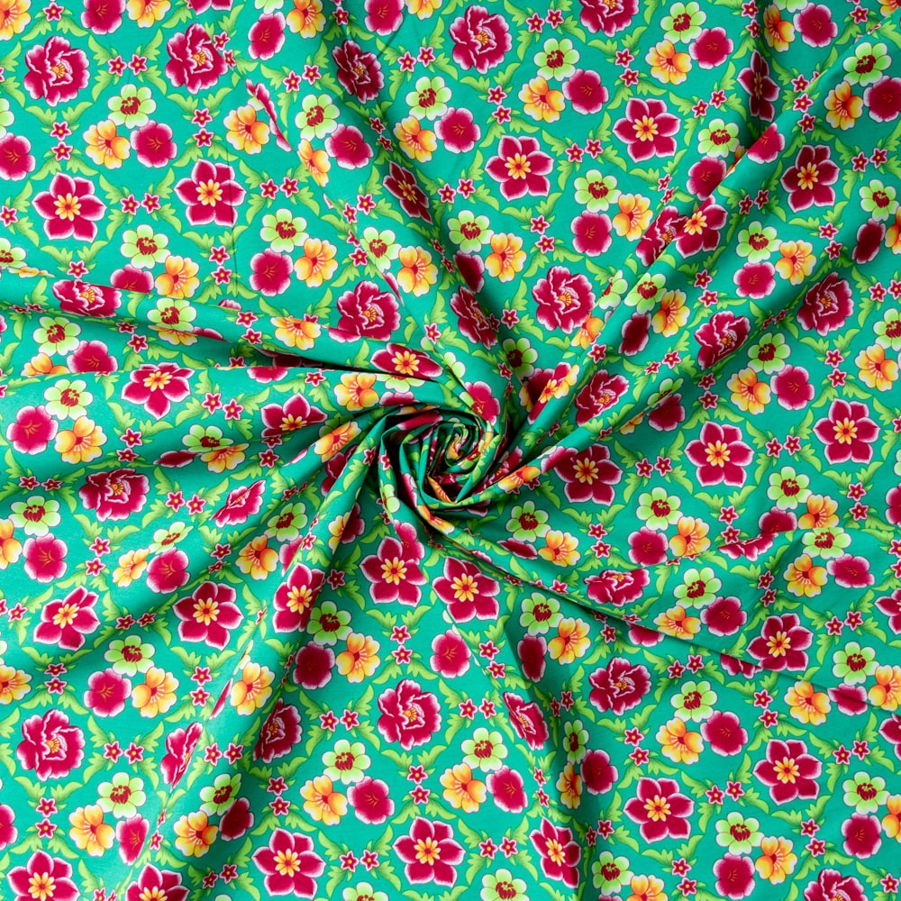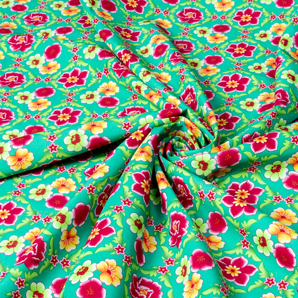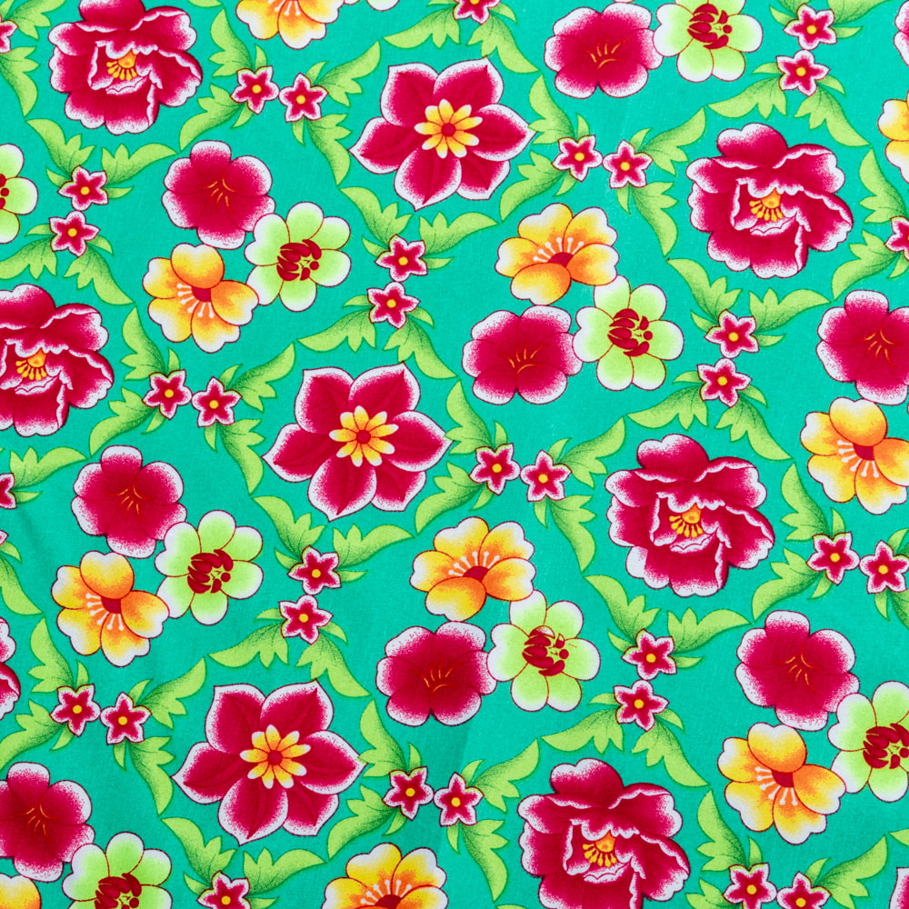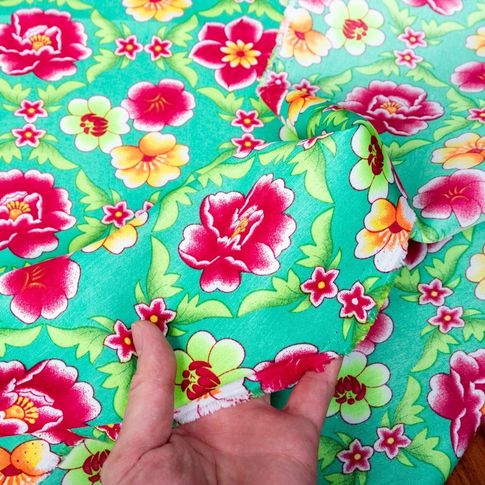 【3個セット】〔1m単位切り売り〕アジアのレトロ花柄ファブリック 生地 東北大花布 ヴィンテージ風 昭和レトロ〔約160cm〕 - グリーン 通販店