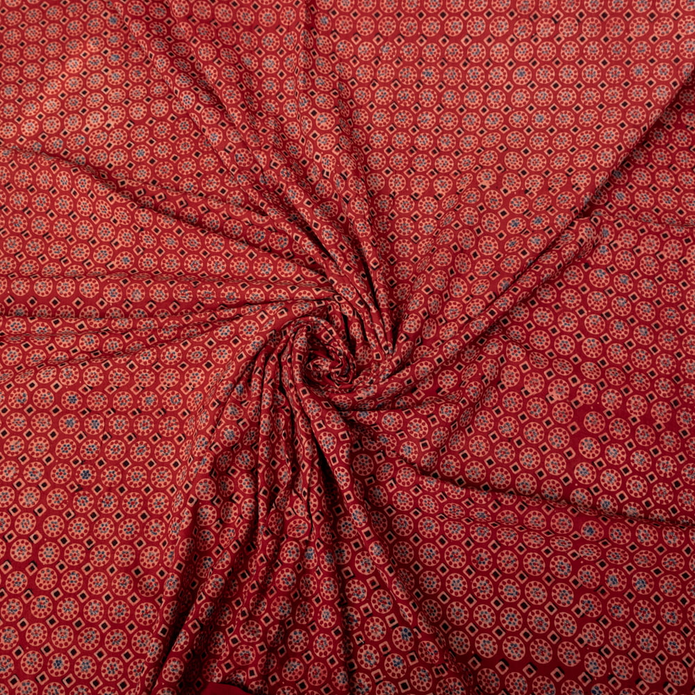 〔1m単位切り売り〕アジュラックプール村からやってきた 昔ながらの木版染めアジュラックデザイン布〔約113cm〕 - レッド系 x 3個