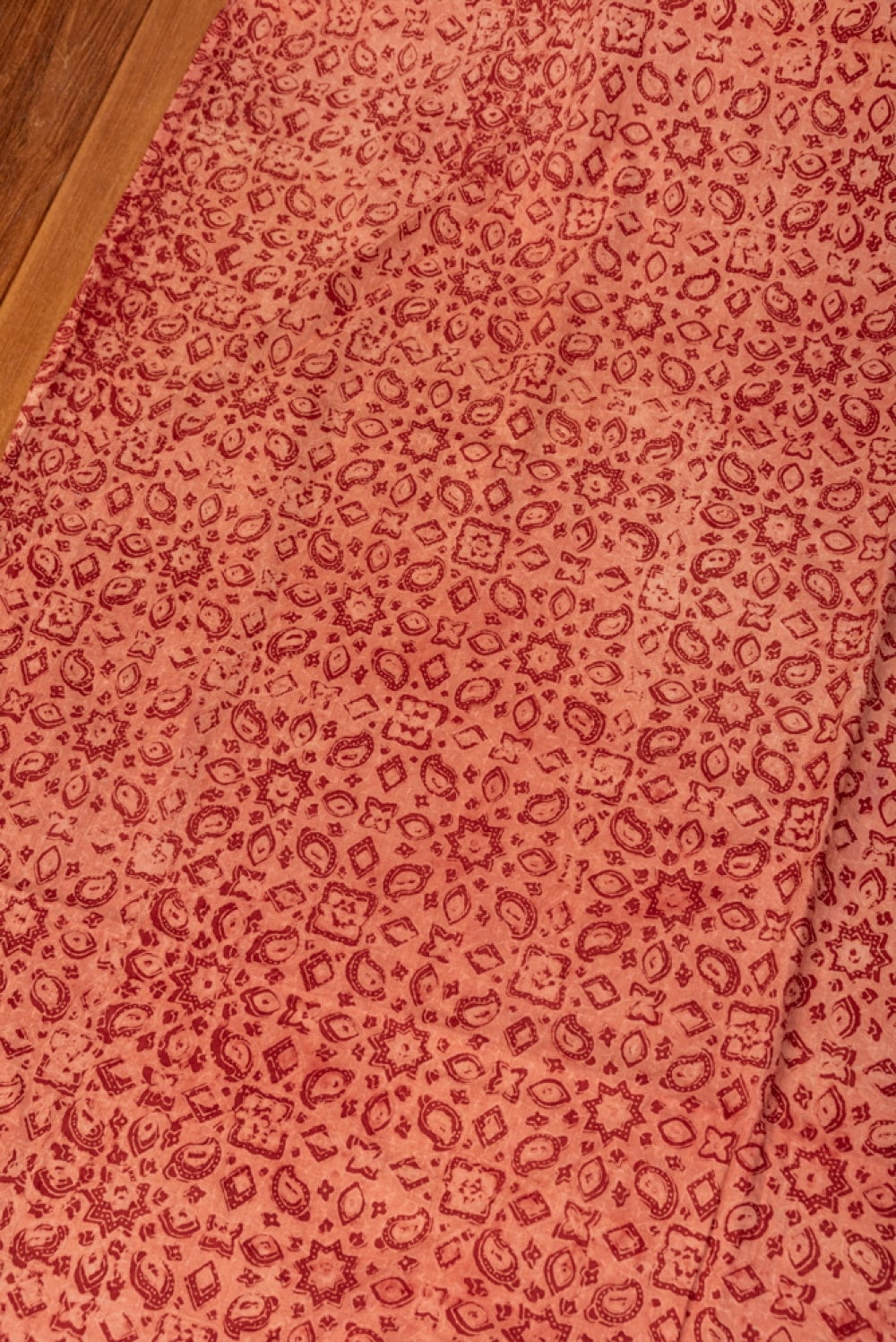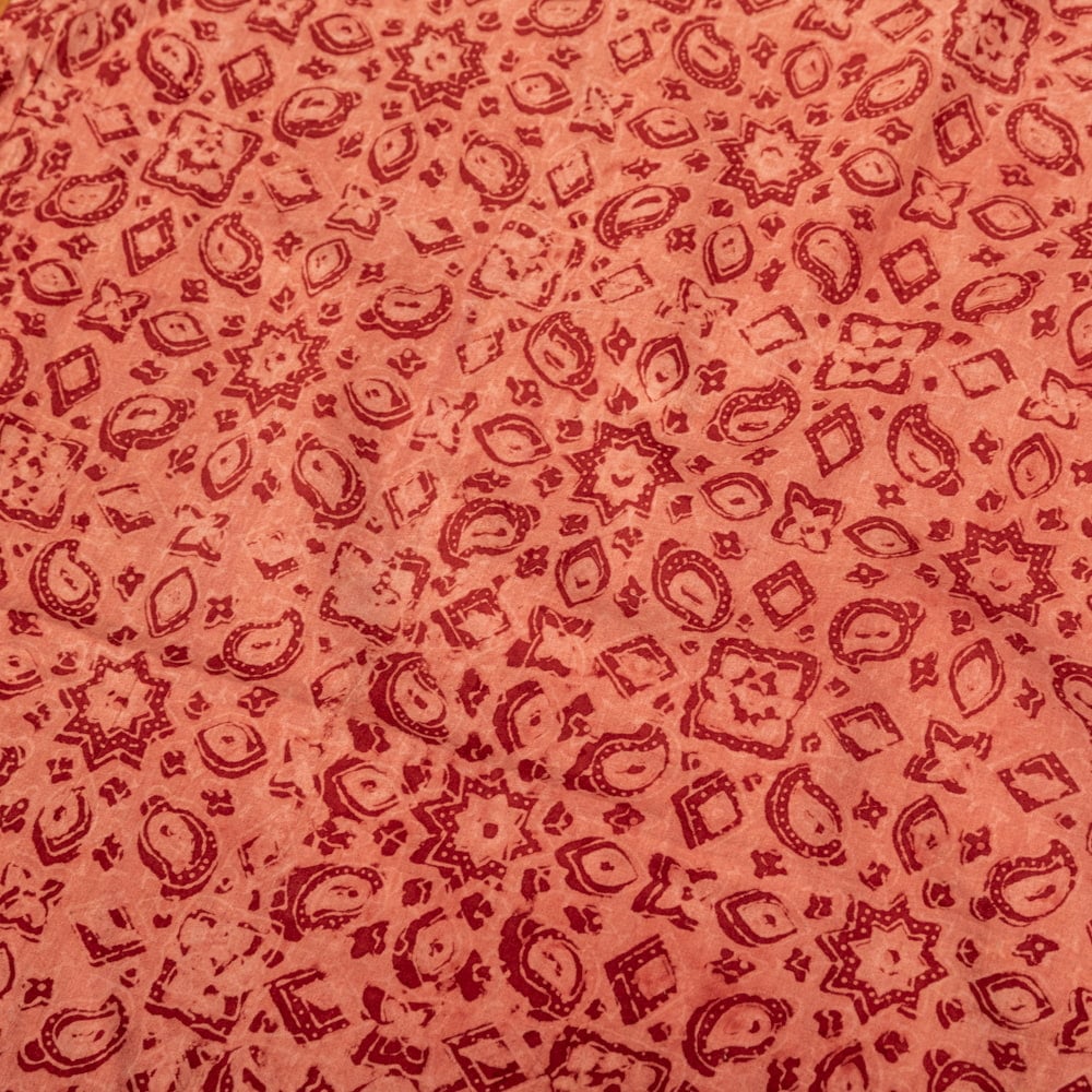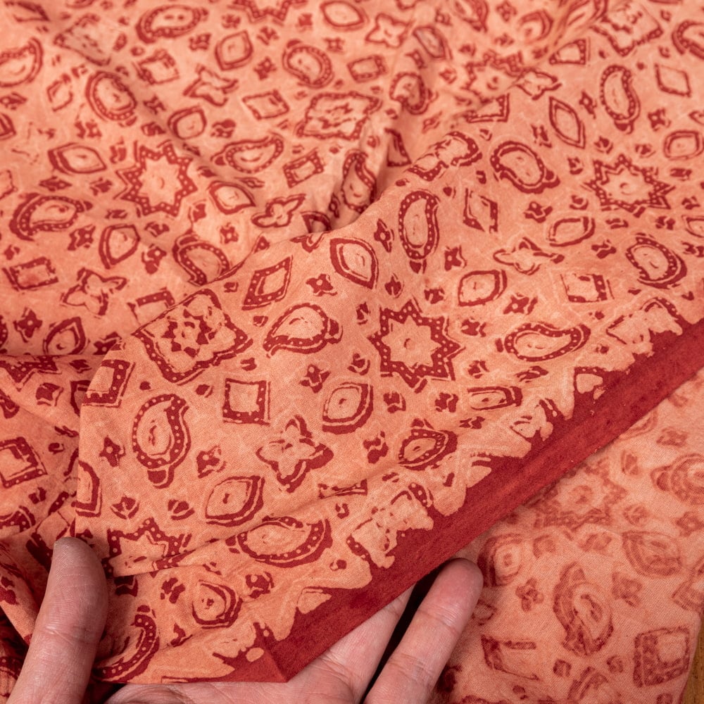 〔1m単位切り売り〕アジュラックプール村からやってきた 昔ながらの木版染め伝統模様布〔幅約111cm〕 - 赤系 x 3個