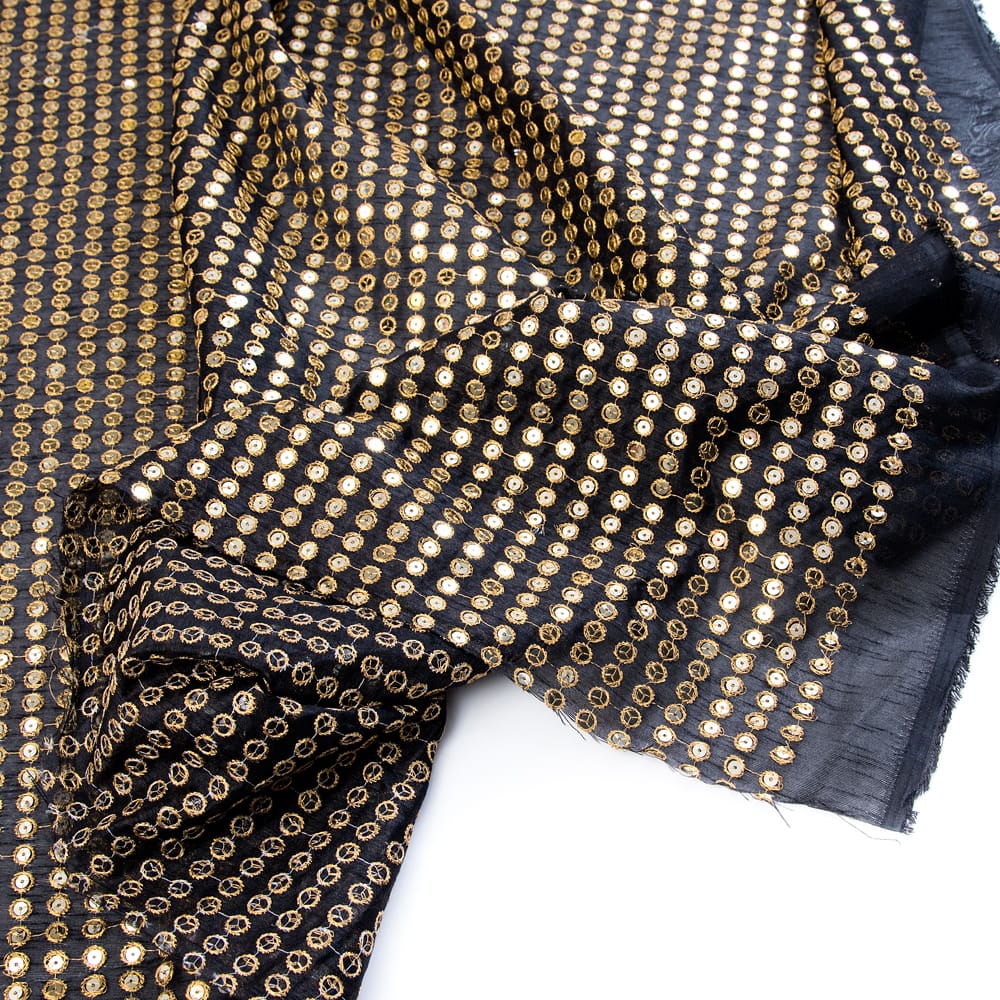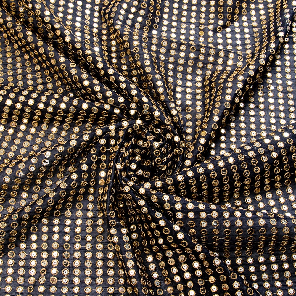 〔1m単位切り売り〕インドのスパンコールクロス布〔111cm〕 - ブラック x 3個