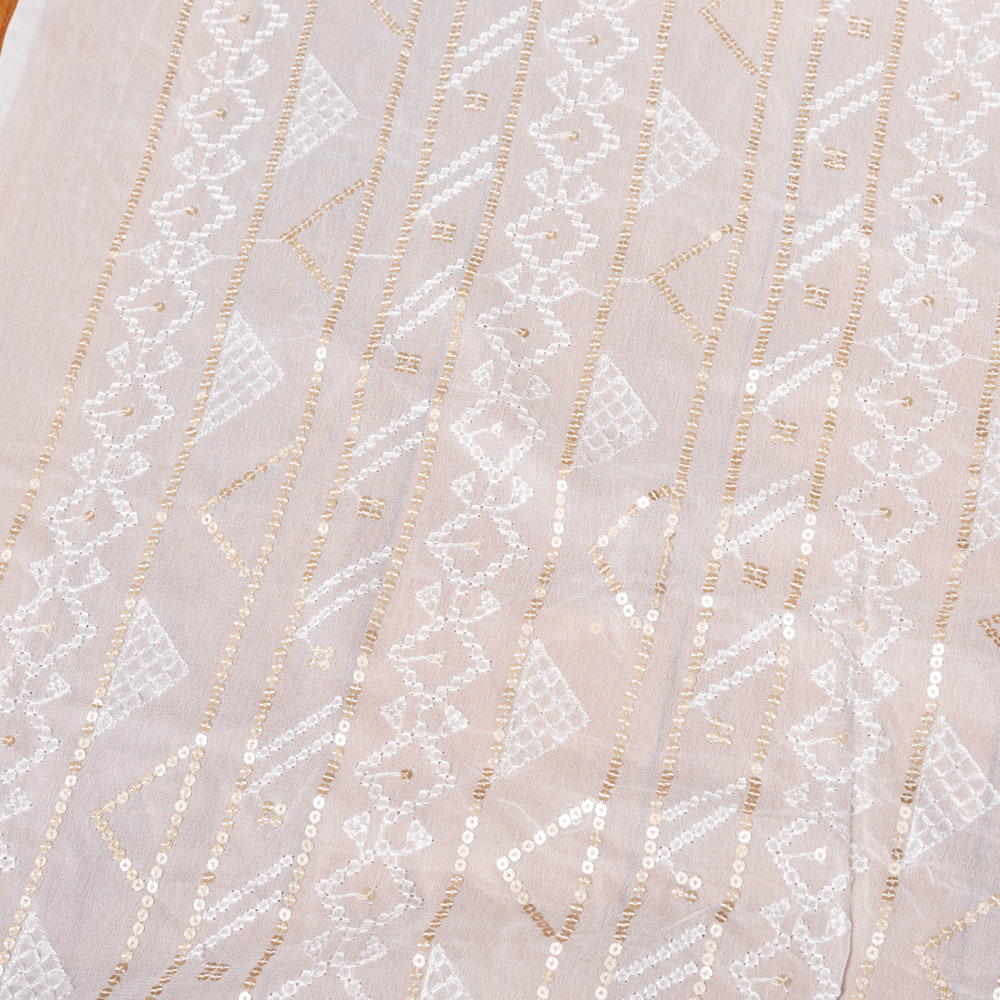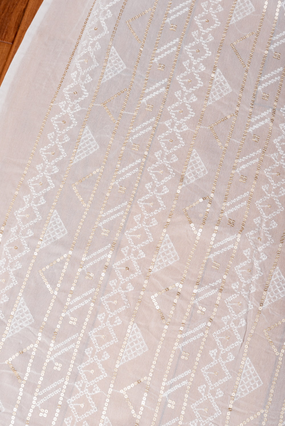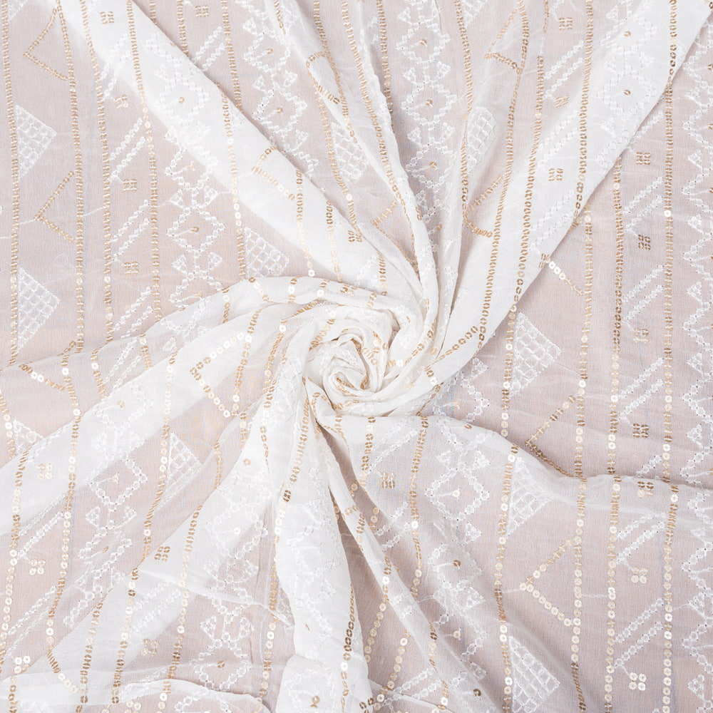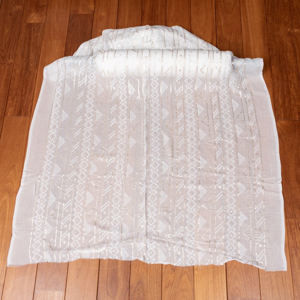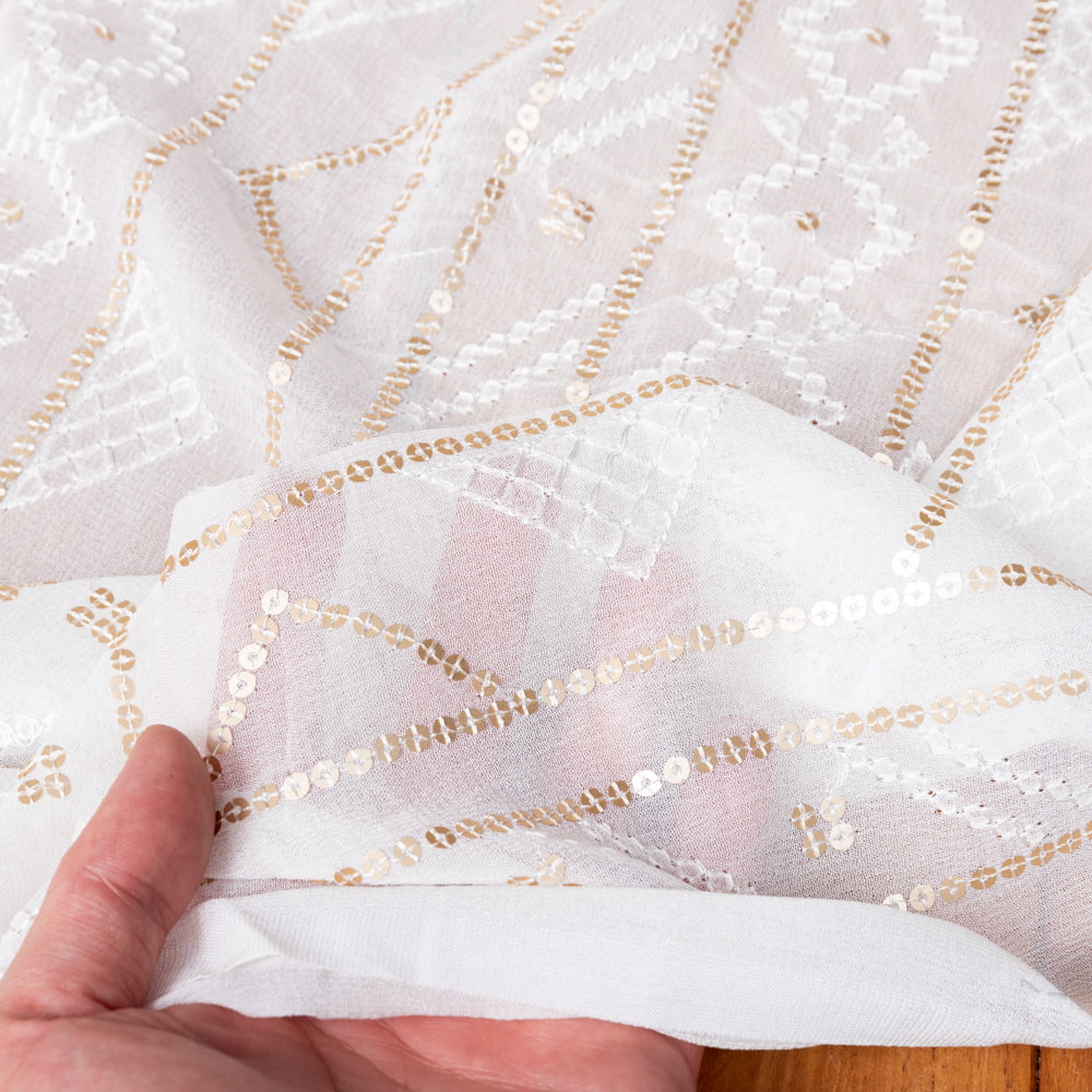 〔1m単位切り売り〕インドのスパンコール刺繍付き シフォン生地布〔約109cm〕ホワイト系 x 3個