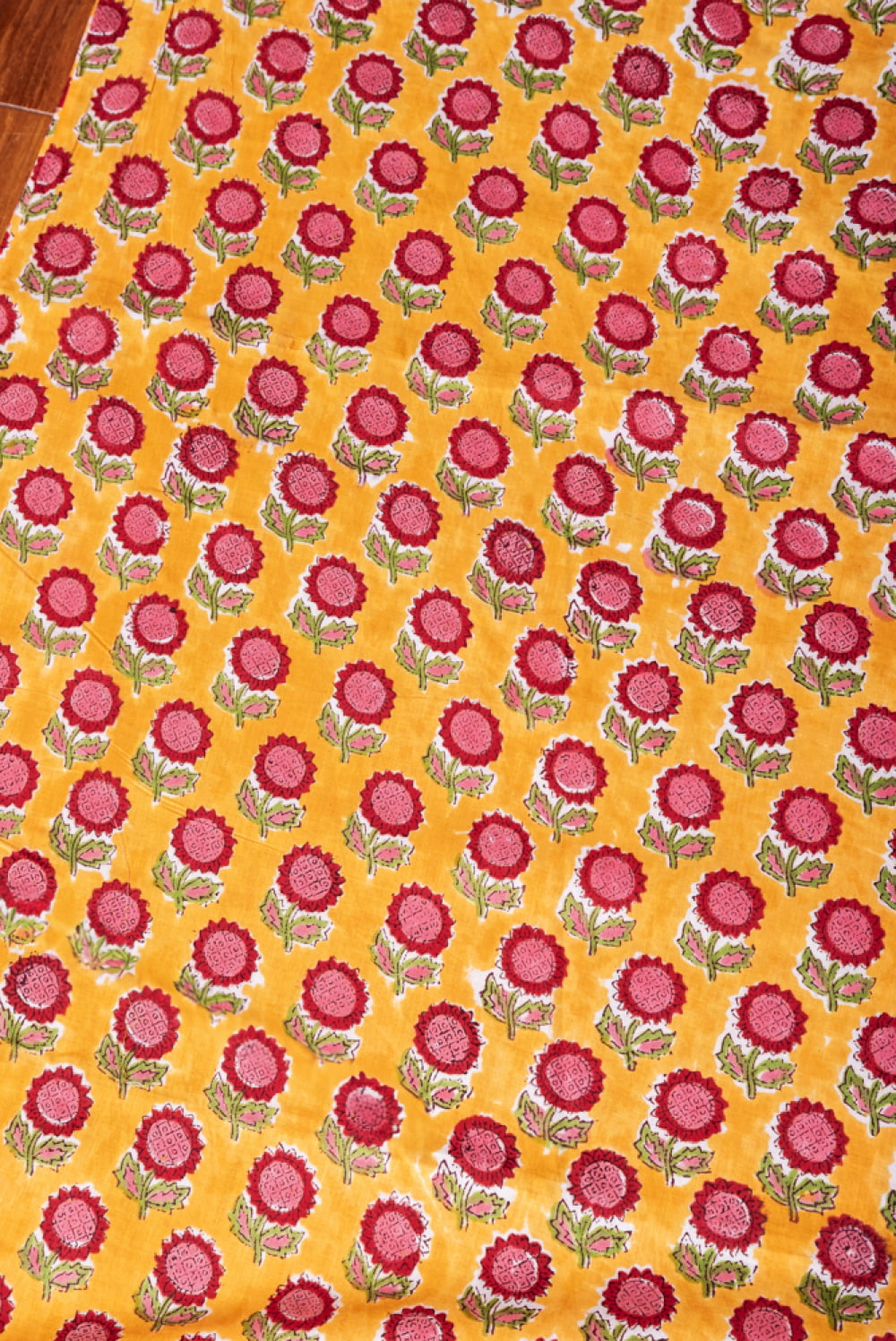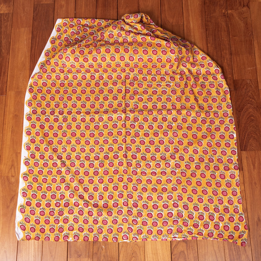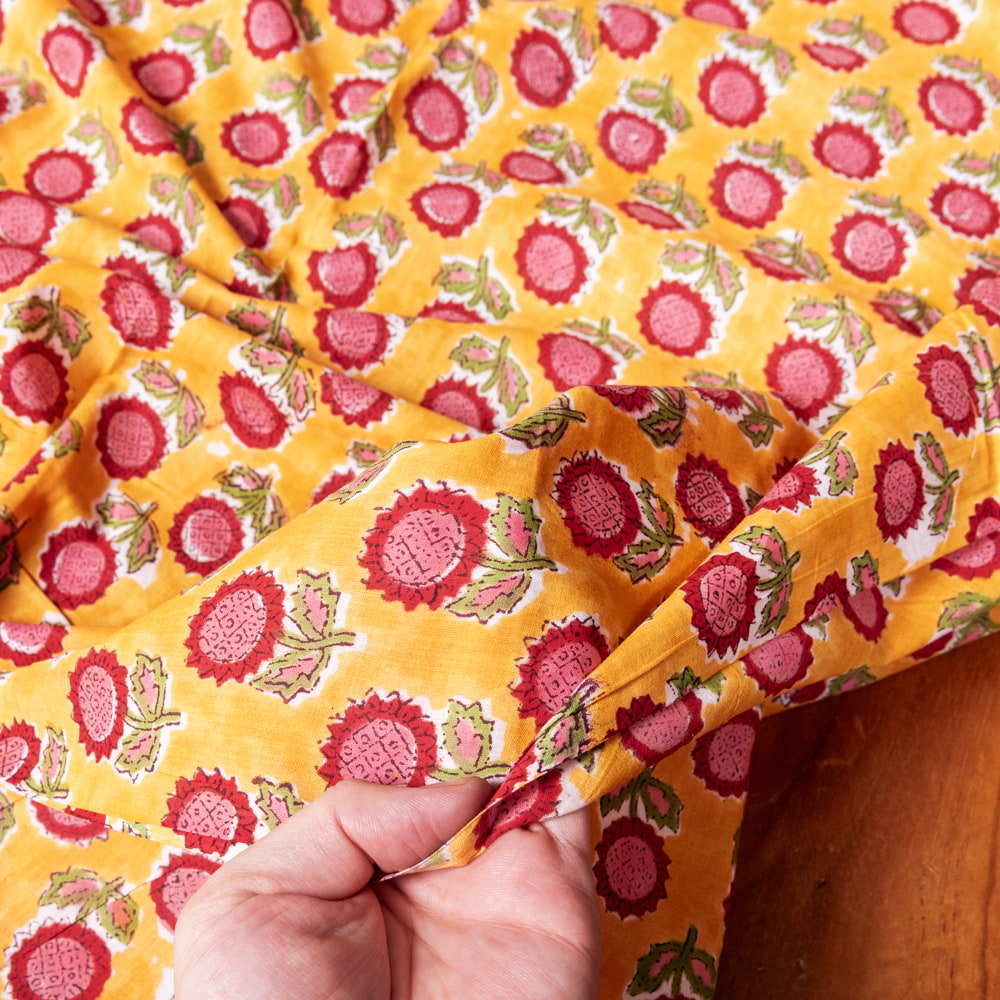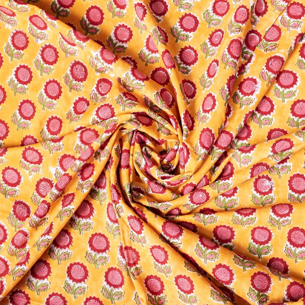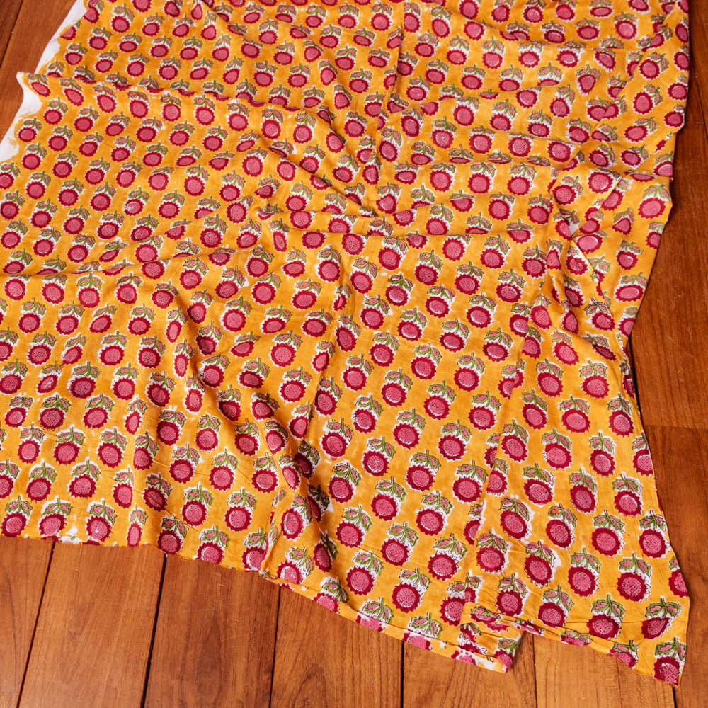 〔1m単位切り売り〕ジャイプル 職人手作り木版染め 色彩美しいボタニカルデザイン おしゃれ 生地 花柄 テーブルクロス 刺繍素材などへ〔幅約108cm〕 - オレンジ系 x 3個