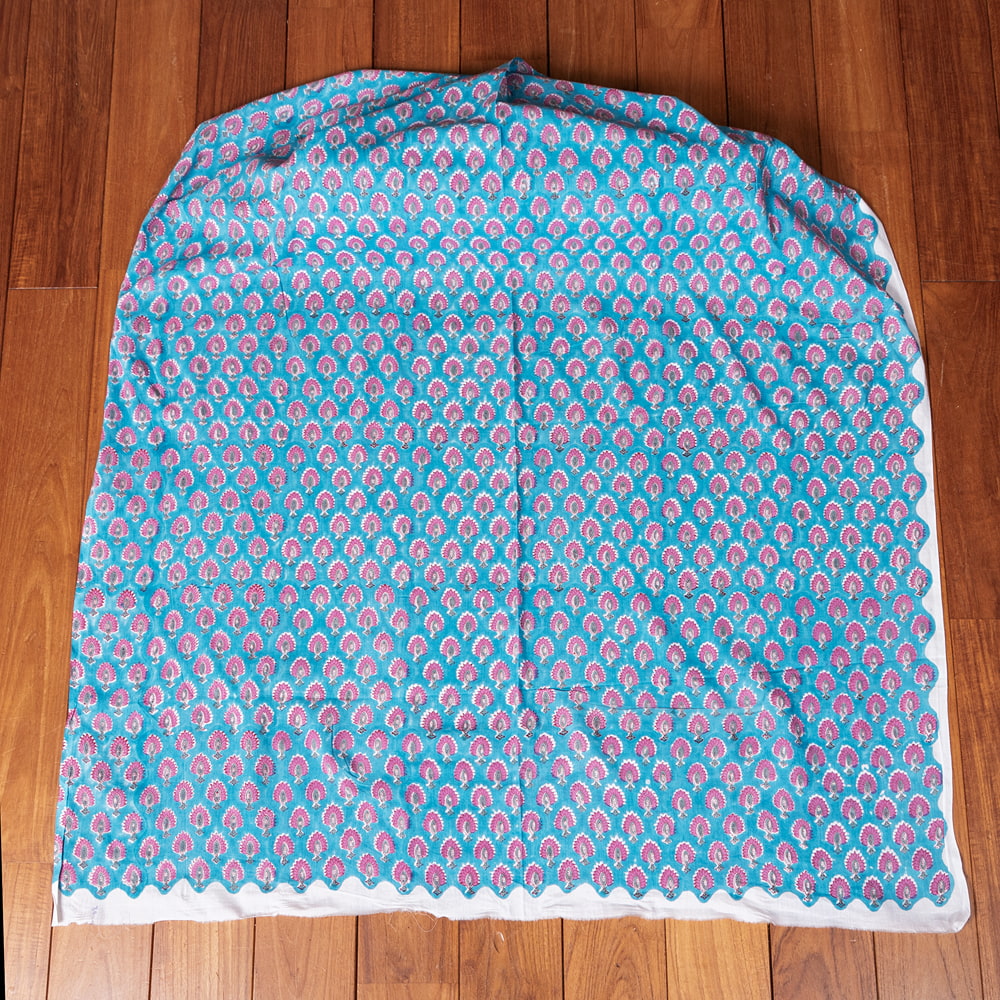 【3個セット】〔1m単位切り売り〕ジャイプル 職人手作り木版染め 色彩美しいボタニカルデザイン おしゃれ 生地 花柄 テーブルクロス 刺繍素材などへ〔幅約108cm〕 - ピーコックブルー系の同一カテゴリ商品