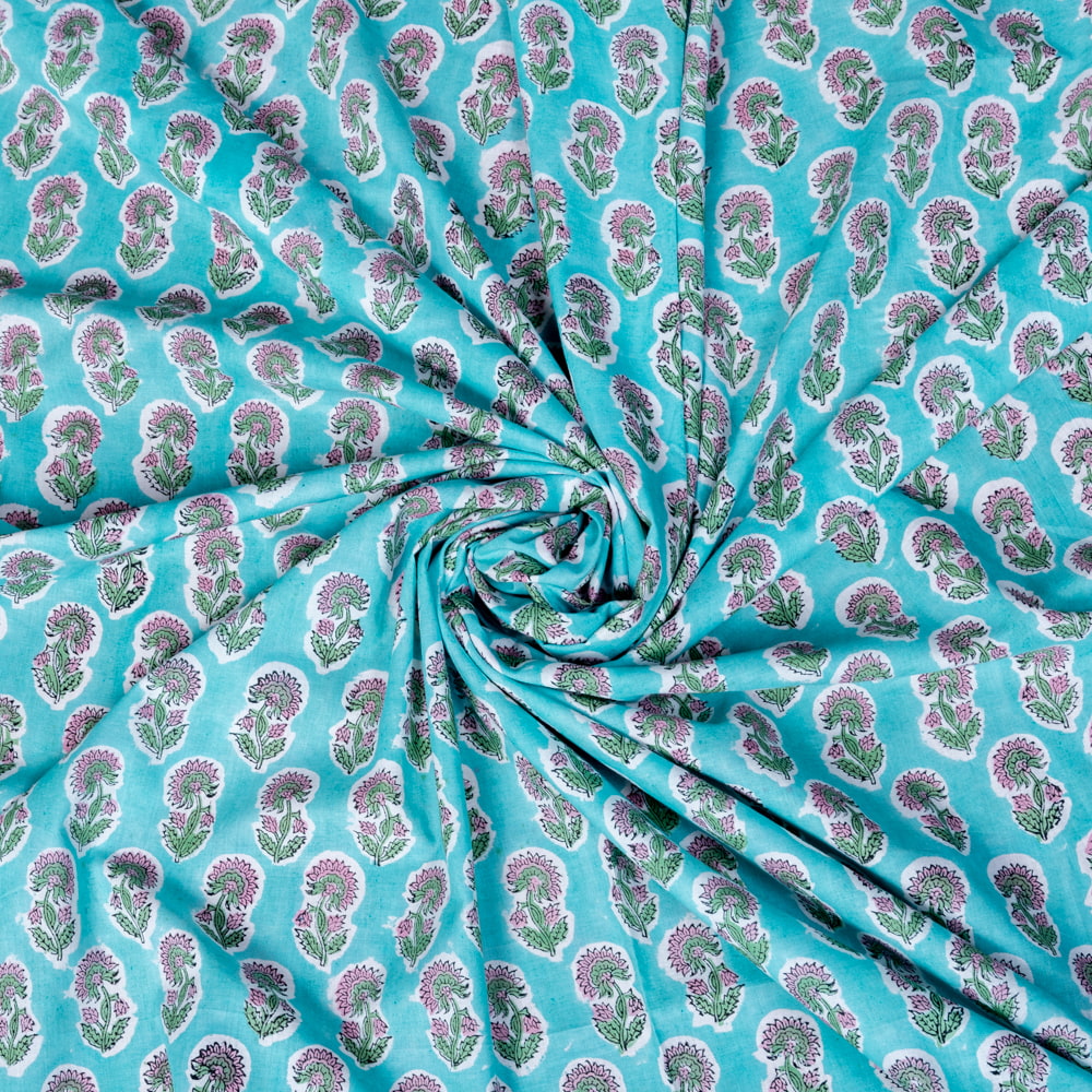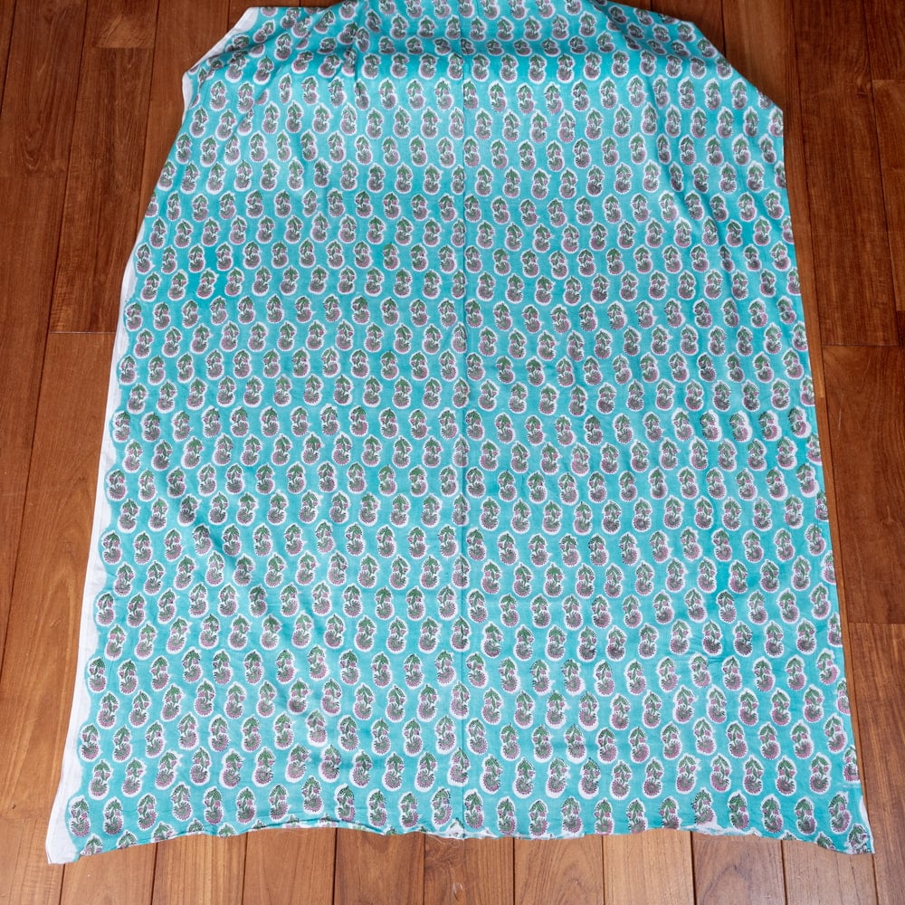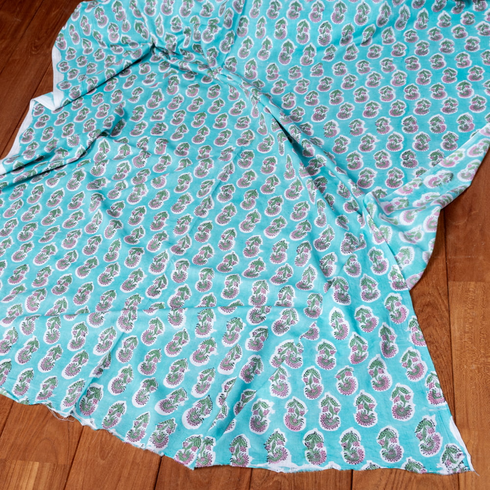 〔1m単位切り売り〕ジャイプル 職人手作り木版染め 色彩美しいボタニカルデザイン おしゃれ 生地 花柄 テーブルクロス 刺繍素材などへ〔幅約109cm〕 - ミントグリーン系 x 3個