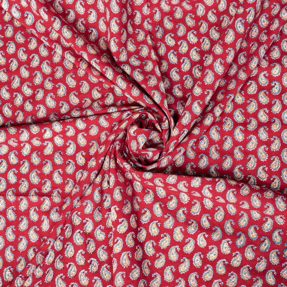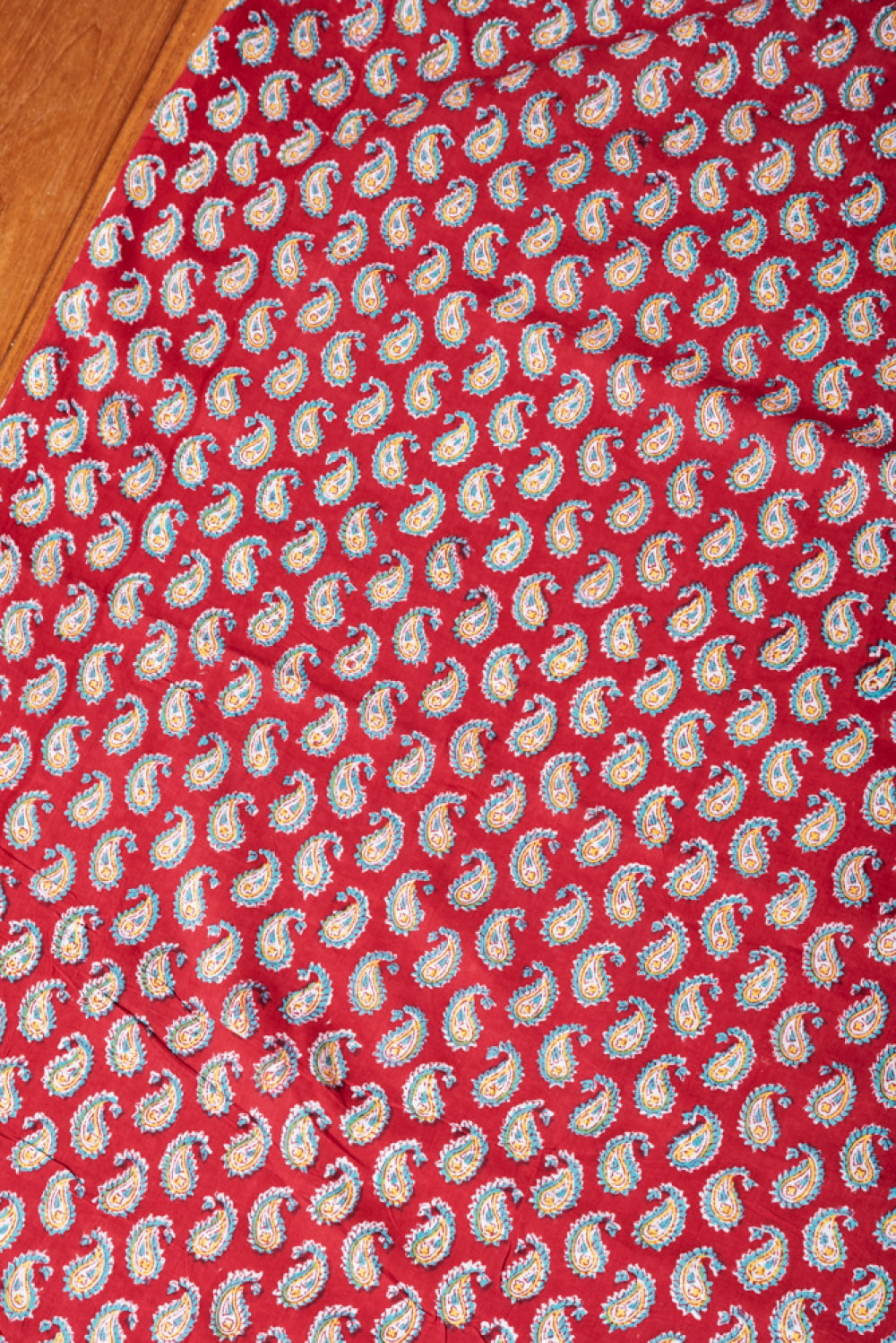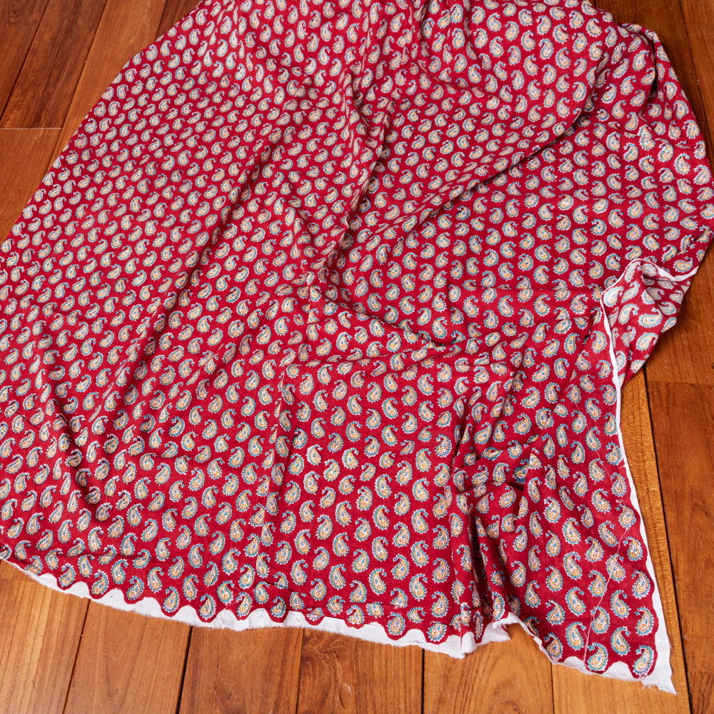 〔1m単位切り売り〕ジャイプル 職人手作り木版染め 色彩美しいボタニカルデザイン おしゃれ 生地 花柄 テーブルクロス 刺繍素材などへ〔幅約109cm〕 - レッド系 x 3個