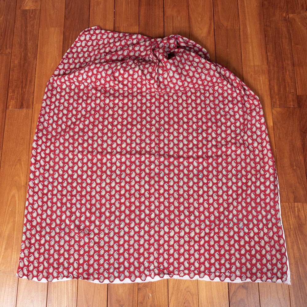 木版染めとは、ウッドブロック(木版)を用いて一つ一つ模様を染めこんだ優雅で贅沢な仕上がりの布です。大量生産には向かない、非常に時間のかかる丁寧な手仕事の賜物といえます。インドは美しい布の宝庫ですが、その中でも特に素敵な一枚に仕上がっています。ハンドメイドのウッドブロックプリントにしか出せない、独特のムラがありとても雰囲気があります。