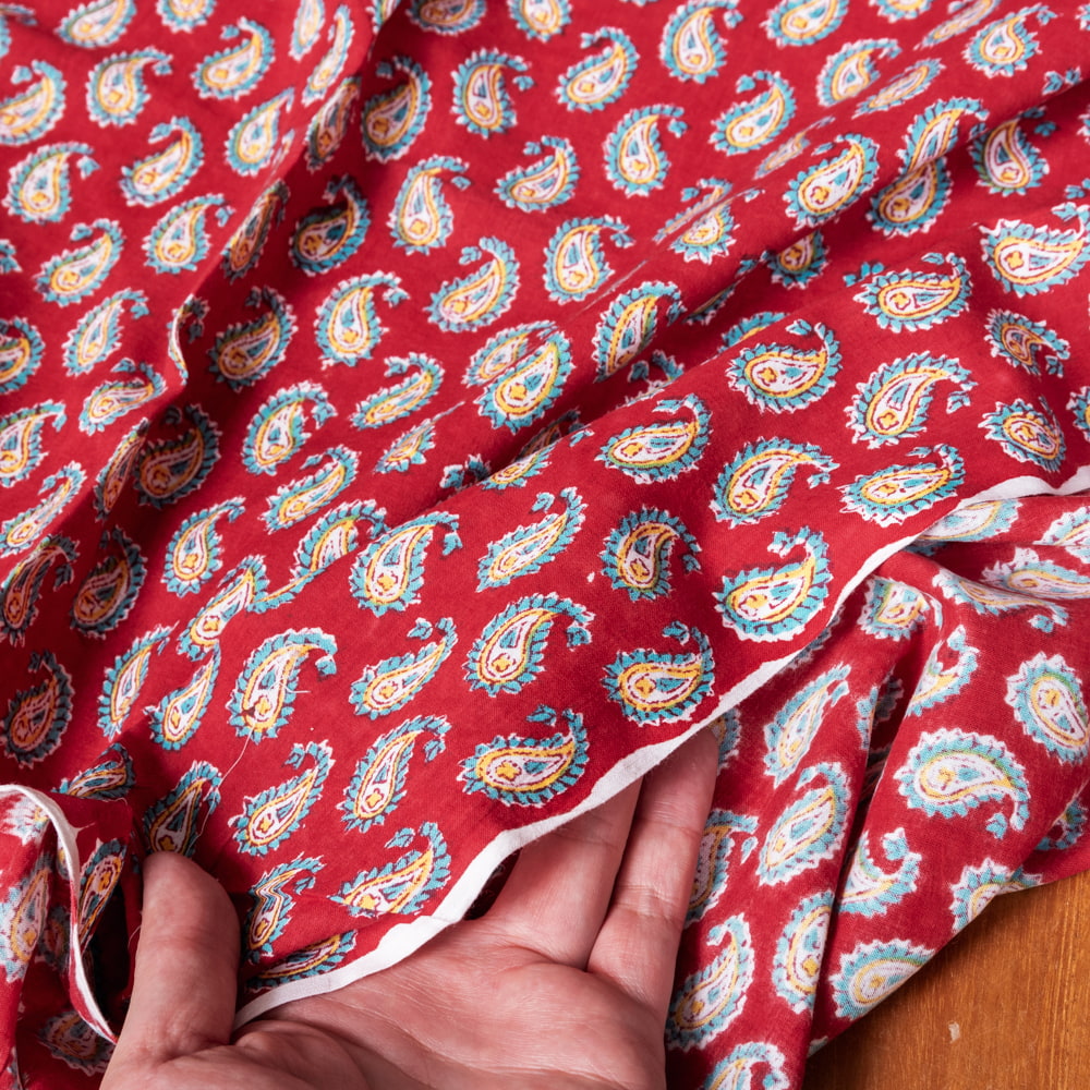 【3個セット】〔1m単位切り売り〕ジャイプル 職人手作り木版染め 色彩美しいボタニカルデザイン おしゃれ 生地 花柄 テーブルクロス 刺繍素材などへ〔幅約109cm〕 - レッド系の同一カテゴリ商品