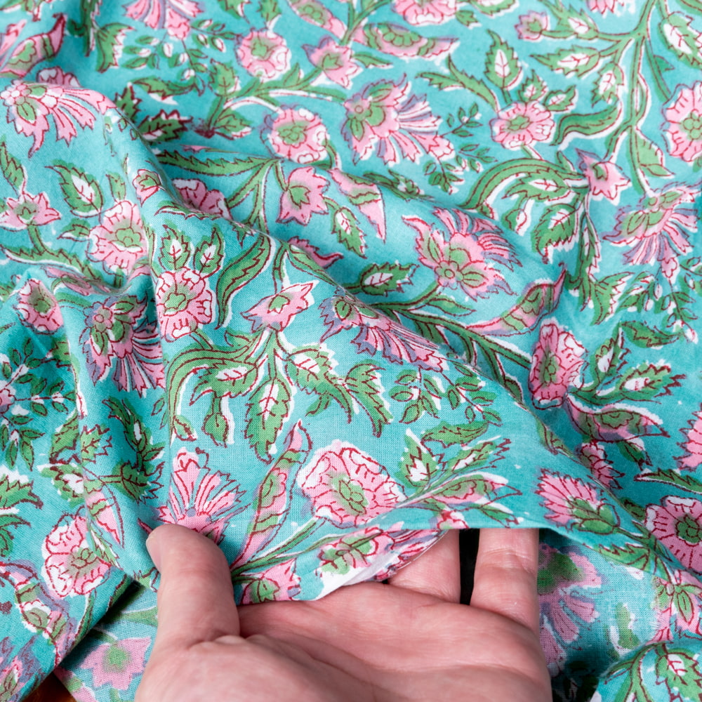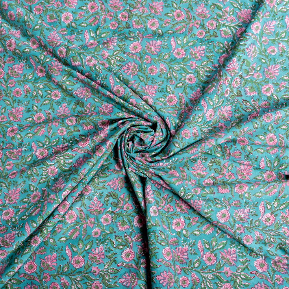 とってもかわいい生地がジャイプルからやってきました。どこかプロヴァンスなテイストも感じさせる、魅力的な色彩とデザイン。職人さんが全て手作りしており、インドらしい木版と鮮やかな色彩がきわだつ、インド綿100%のファブリックです。ナチュラルな風合いは、派手すぎずほどよく上品な雰囲気で、どんなお部屋にも馴染み、相性良くフィットしてくれそうです。