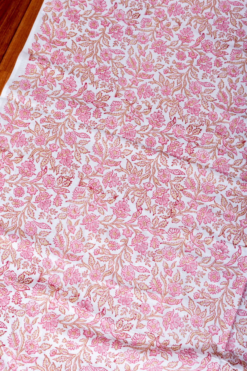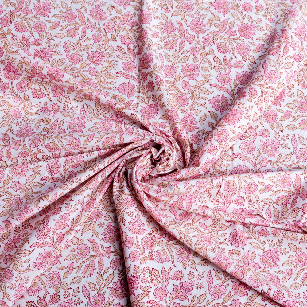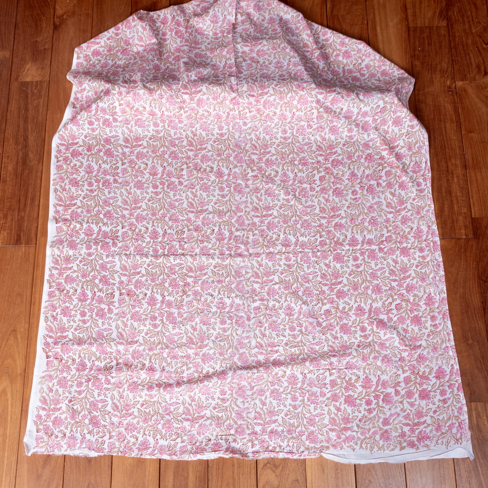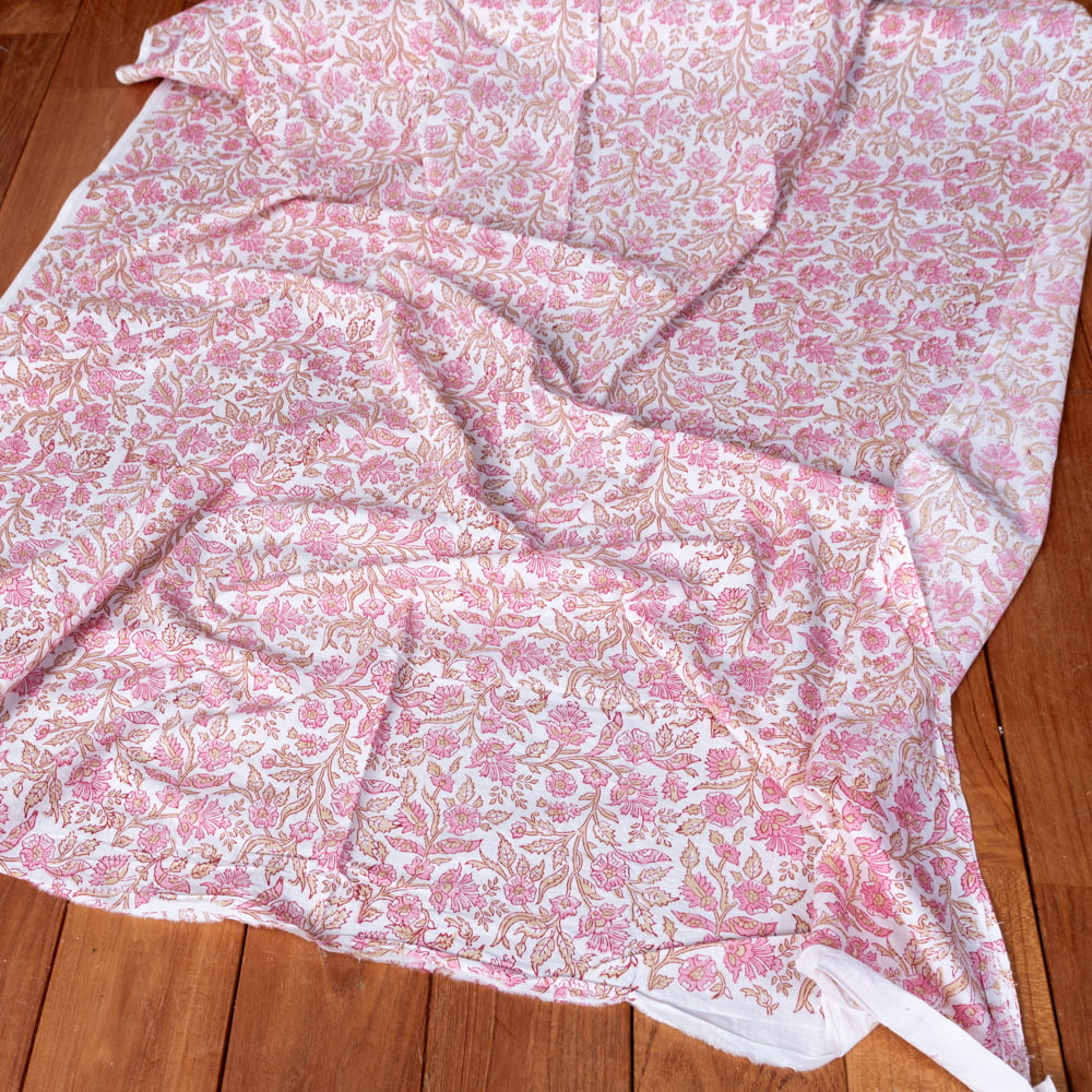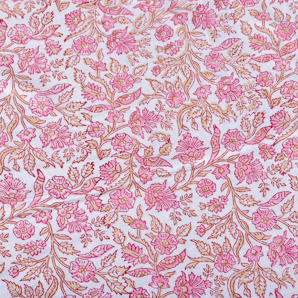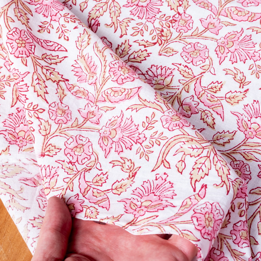 〔1m単位切り売り〕ジャイプル 職人手作り木版染め 色彩美しいボタニカルデザイン おしゃれ 生地 花柄 テーブルクロス 刺繍素材などへ〔幅約111cm〕 - ピンク系 x 3個