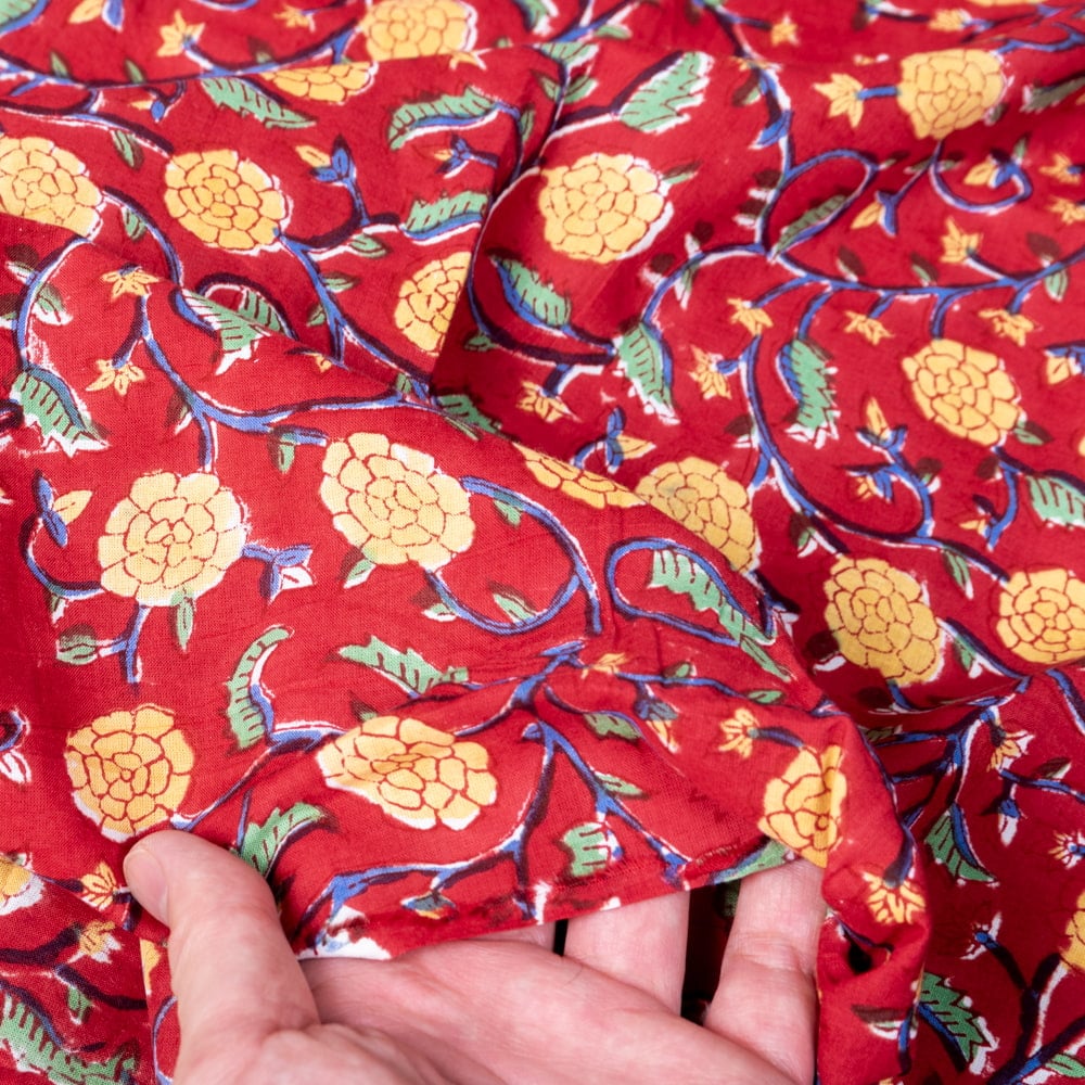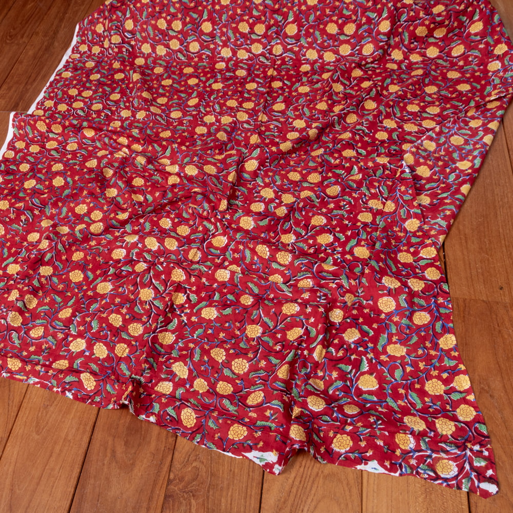 〔1m単位切り売り〕ジャイプル 職人手作り木版染め 色彩美しいボタニカルデザイン おしゃれ 生地 花柄 テーブルクロス 刺繍素材などへ〔幅約111cm〕 - レッド系 x 3個