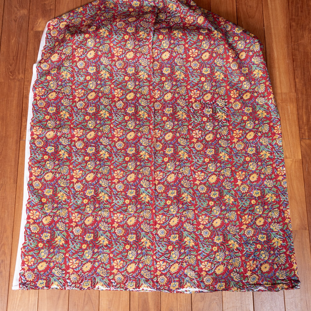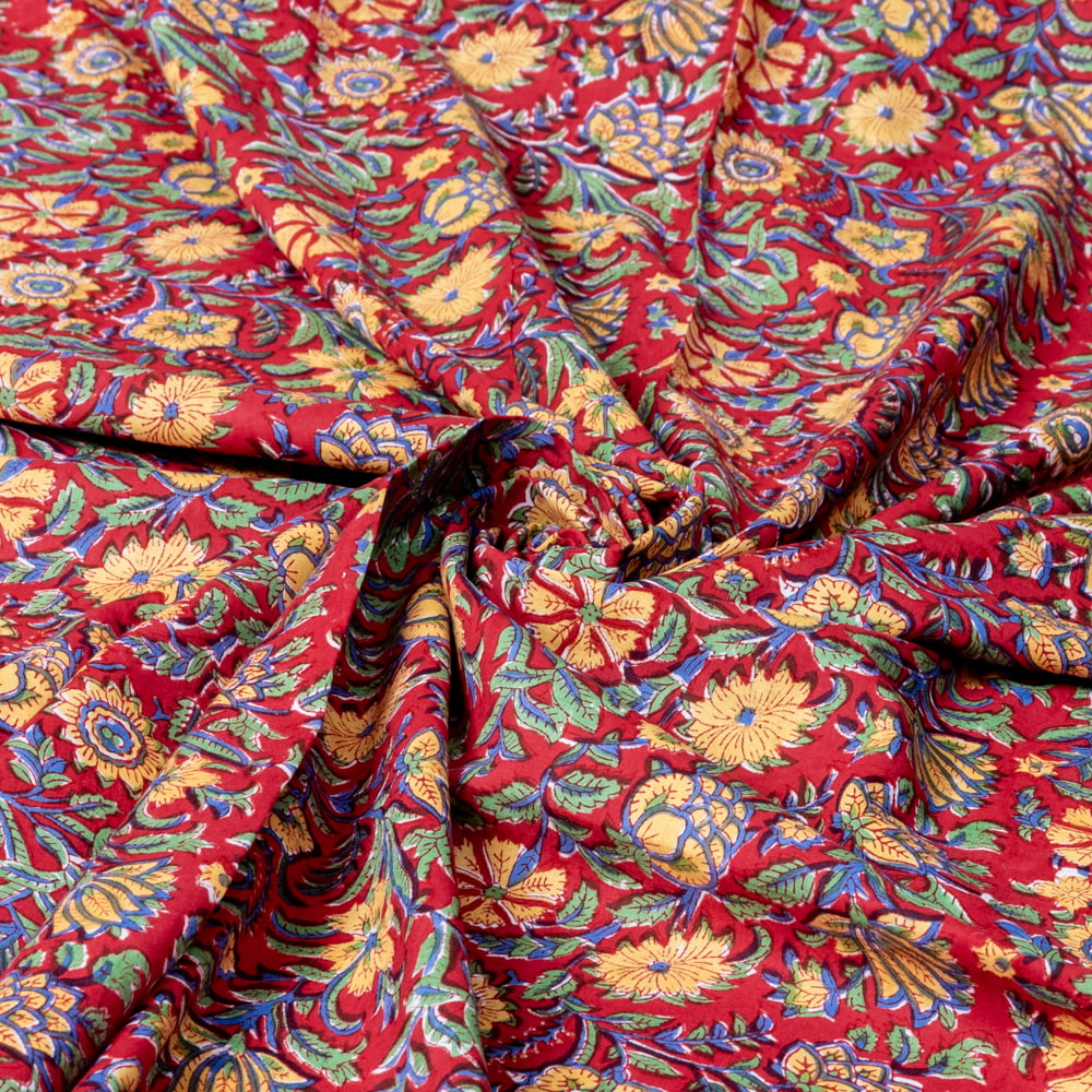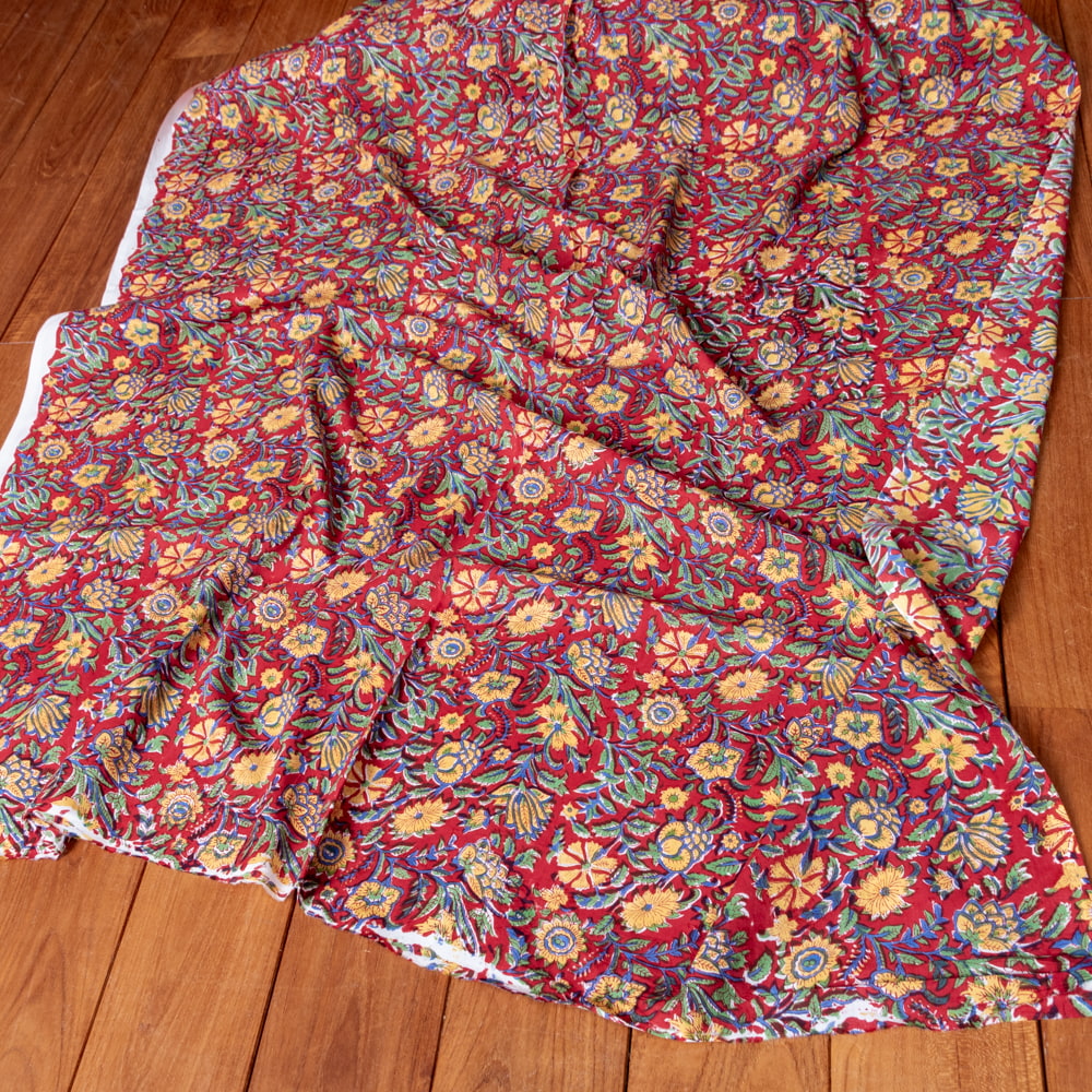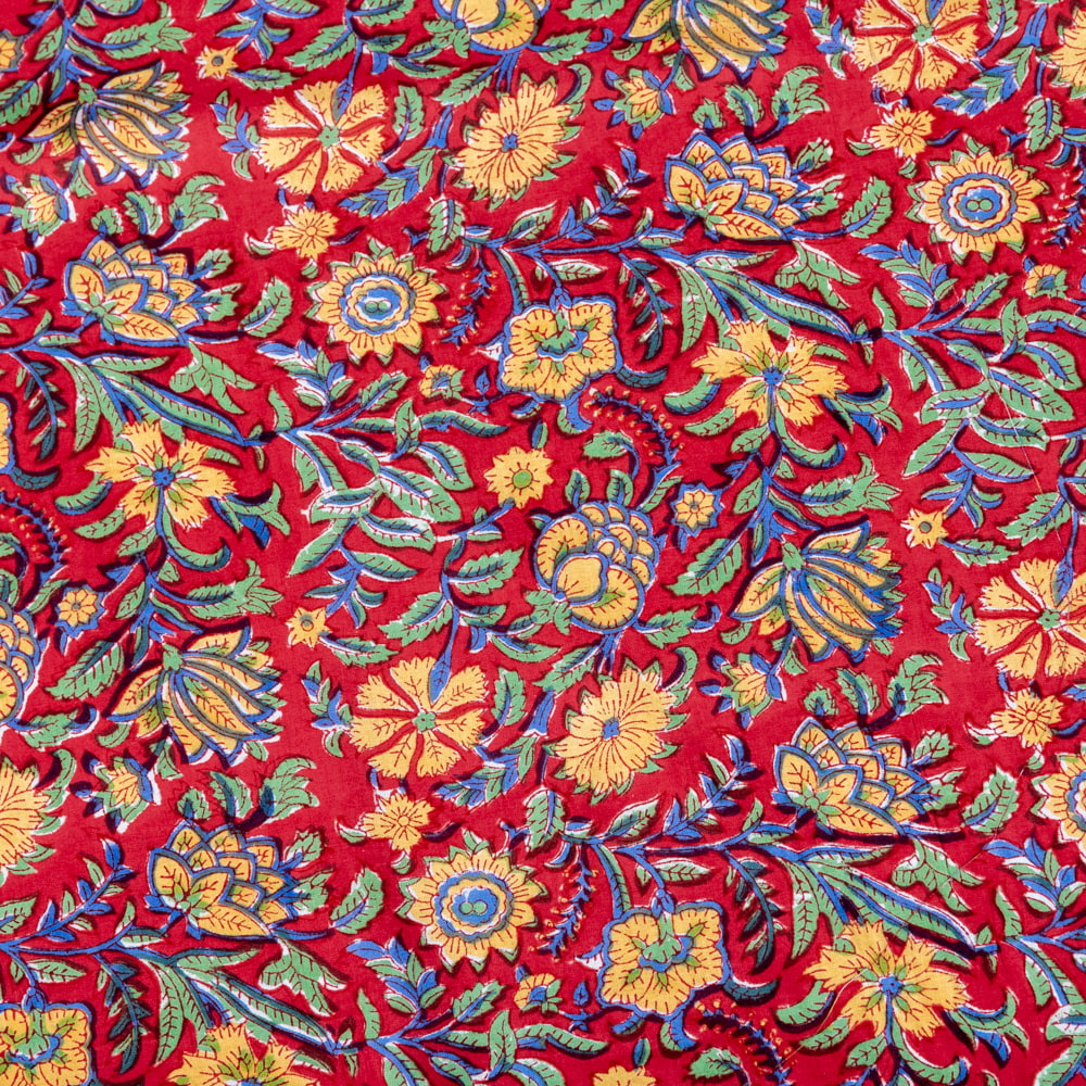 〔1m単位切り売り〕ジャイプル 職人手作り木版染め 色彩美しいボタニカルデザイン おしゃれ 生地 花柄 テーブルクロス 刺繍素材などへ〔幅約112cm〕 - レッド系 x 3個