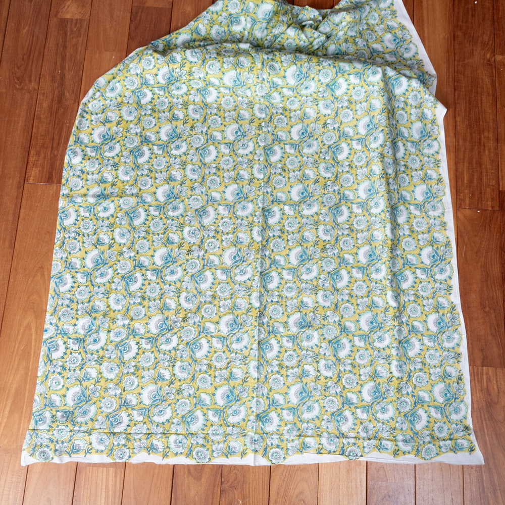 〔1m単位切り売り〕ジャイプル 職人手作り木版染め 色彩美しいボタニカルデザイン おしゃれ 生地 花柄 テーブルクロス 刺繍素材などへ〔幅約113cm〕 - ウグイス系 x 3個