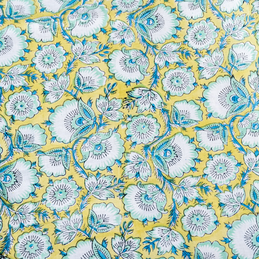 とってもかわいい生地がジャイプルからやってきました。どこかプロヴァンスなテイストも感じさせる、魅力的な色彩とデザイン。職人さんが全て手作りしており、インドらしい木版と鮮やかな色彩がきわだつ、インド綿100%のファブリックです。ナチュラルな風合いは、派手すぎずほどよく上品な雰囲気で、どんなお部屋にも馴染み、相性良くフィットしてくれそうです。