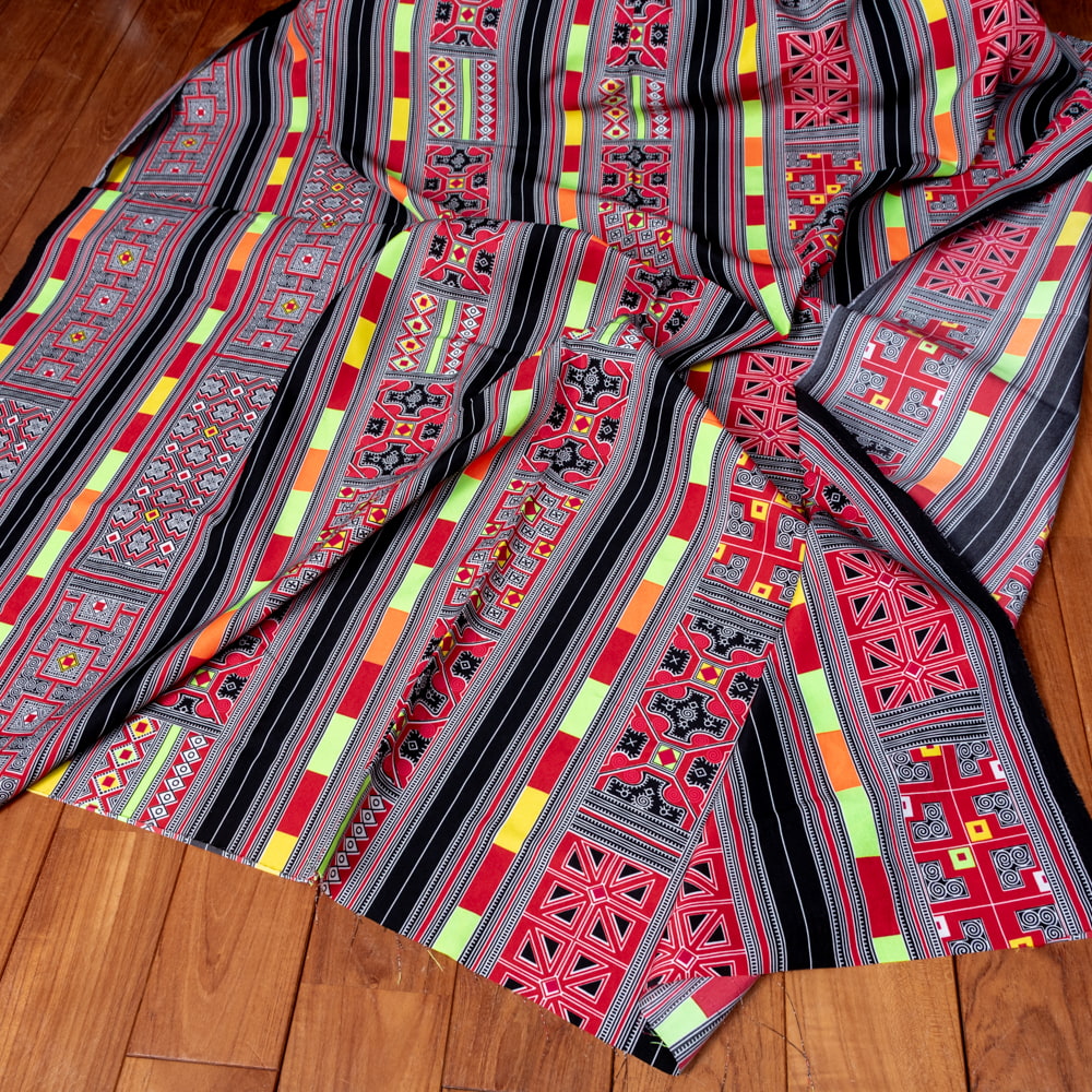 〔1m単位切り売り〕モン族の刺繍風プリントファブリック 生地 少数民族 フォークロア 民俗的 トライバル〔約162cm〕 x 3個