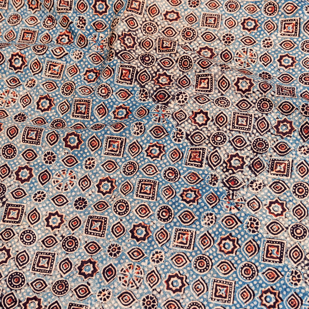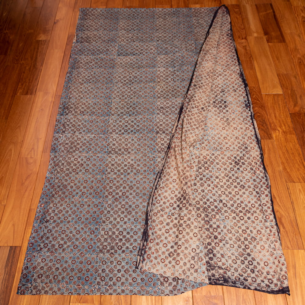 〔約3.8m 長尺布】伝統息づくインドから 昔ながらの木版染めアジュラックデザインの伝統模様布〔横幅:約109cm〕 x 3個