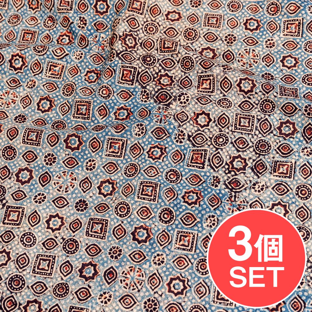 【3個セット】〔約3.8m 長尺布】伝統息づくインドから 昔ながらの木版染めアジュラックデザインの伝統模様布〔横幅:約109cm〕です。セットでお得になっています♪