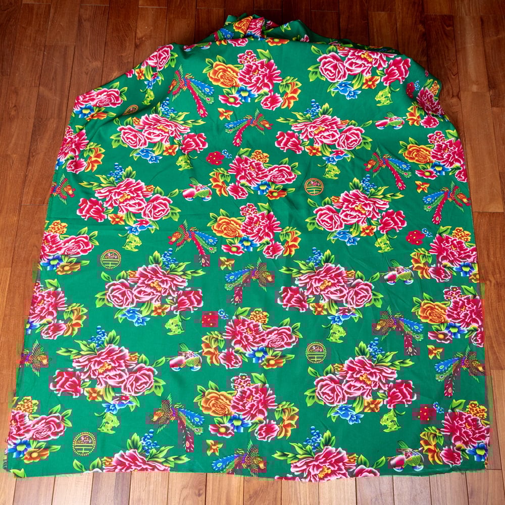〔1m単位切り売り〕アジアのレトロ花柄ファブリック 生地 東北大花布 鳳凰牡丹 花鳥画 ヴィンテージ風 昭和レトロ〔約160cm〕 - グリーン x 5個