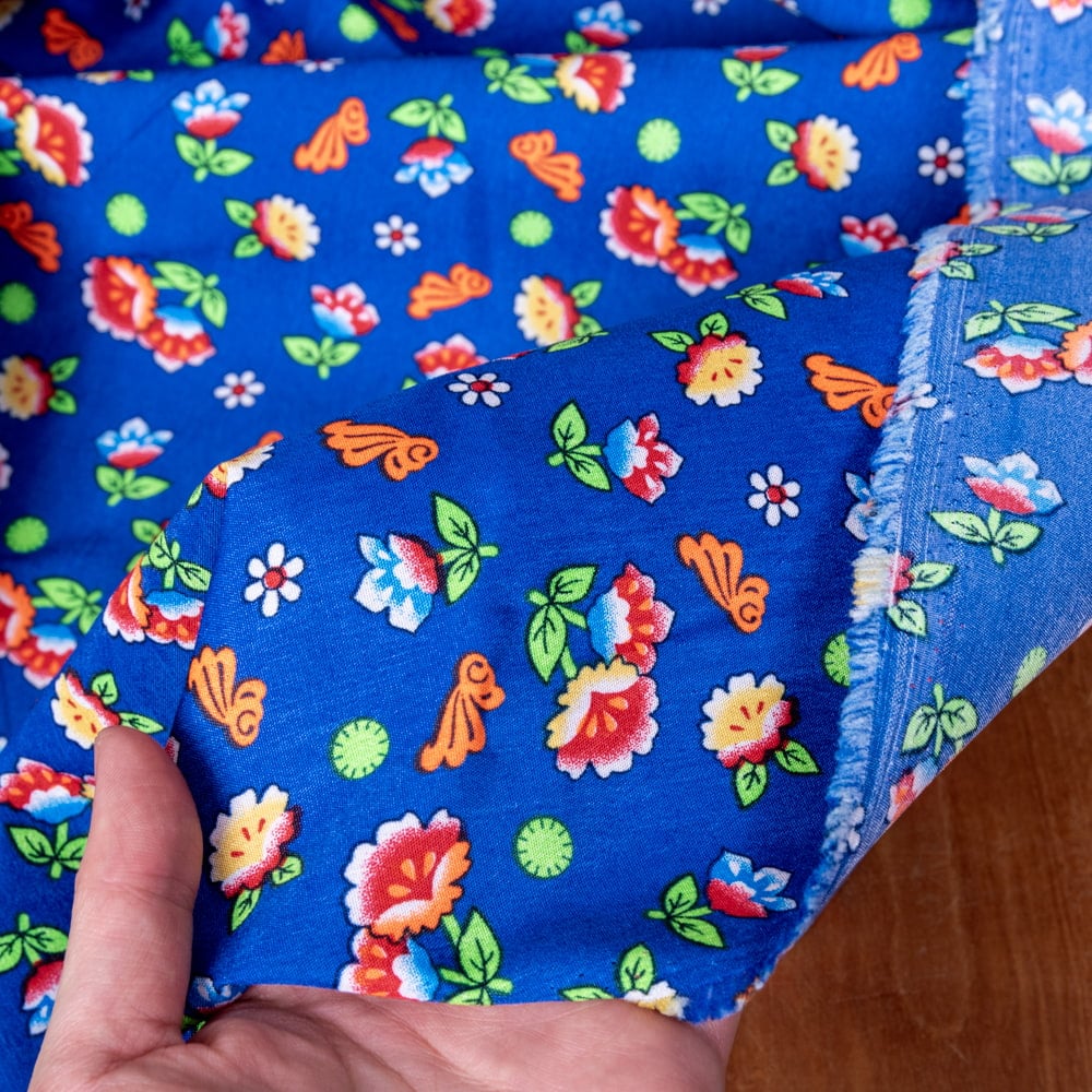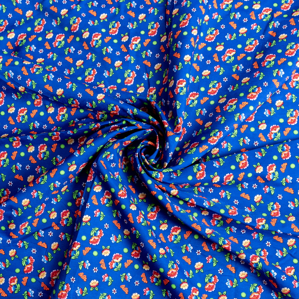 【5個セット】〔1m単位切り売り〕アジアのレトロ小花柄ファブリック ヴィンテージ風 昭和レトロ〔約128cm〕 - ブルー 通販店