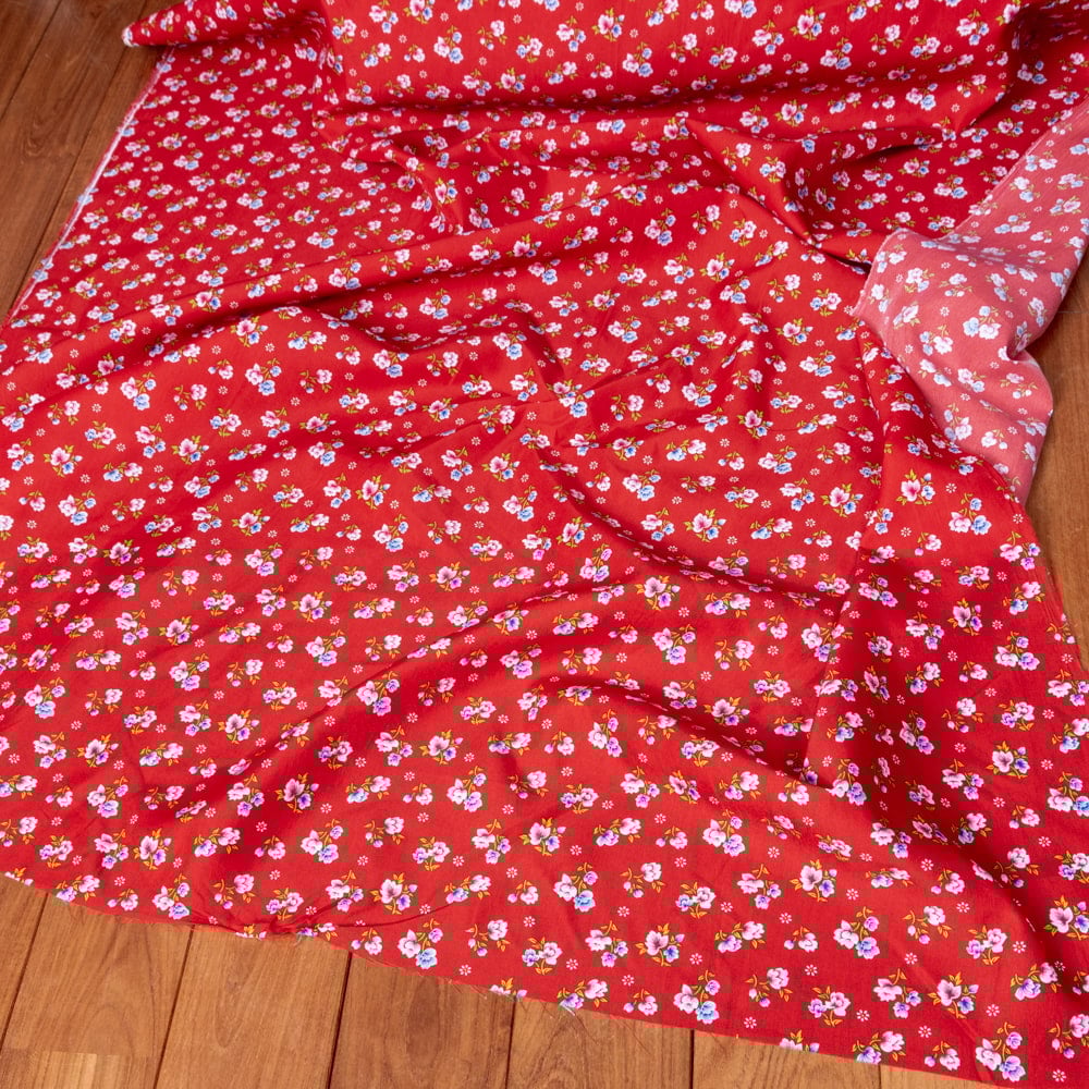 〔1m単位切り売り〕アジアのレトロ小花柄ファブリック ヴィンテージ風 昭和レトロ〔約162.5cm〕 - レッド x 5個