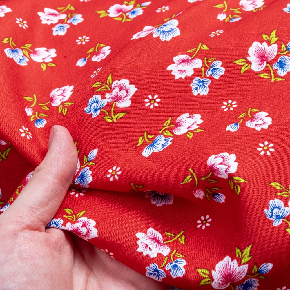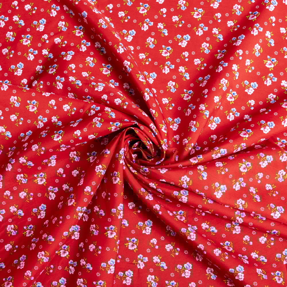 【5個セット】〔1m切単位り売り〕アジアのレトロ小花柄ファブリック ヴィンテージ風 昭和レトロ〔約162.5cm〕 - レッド 通販店