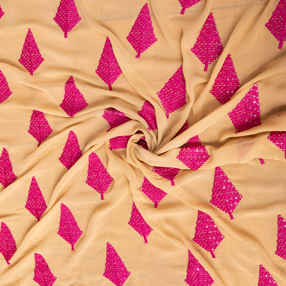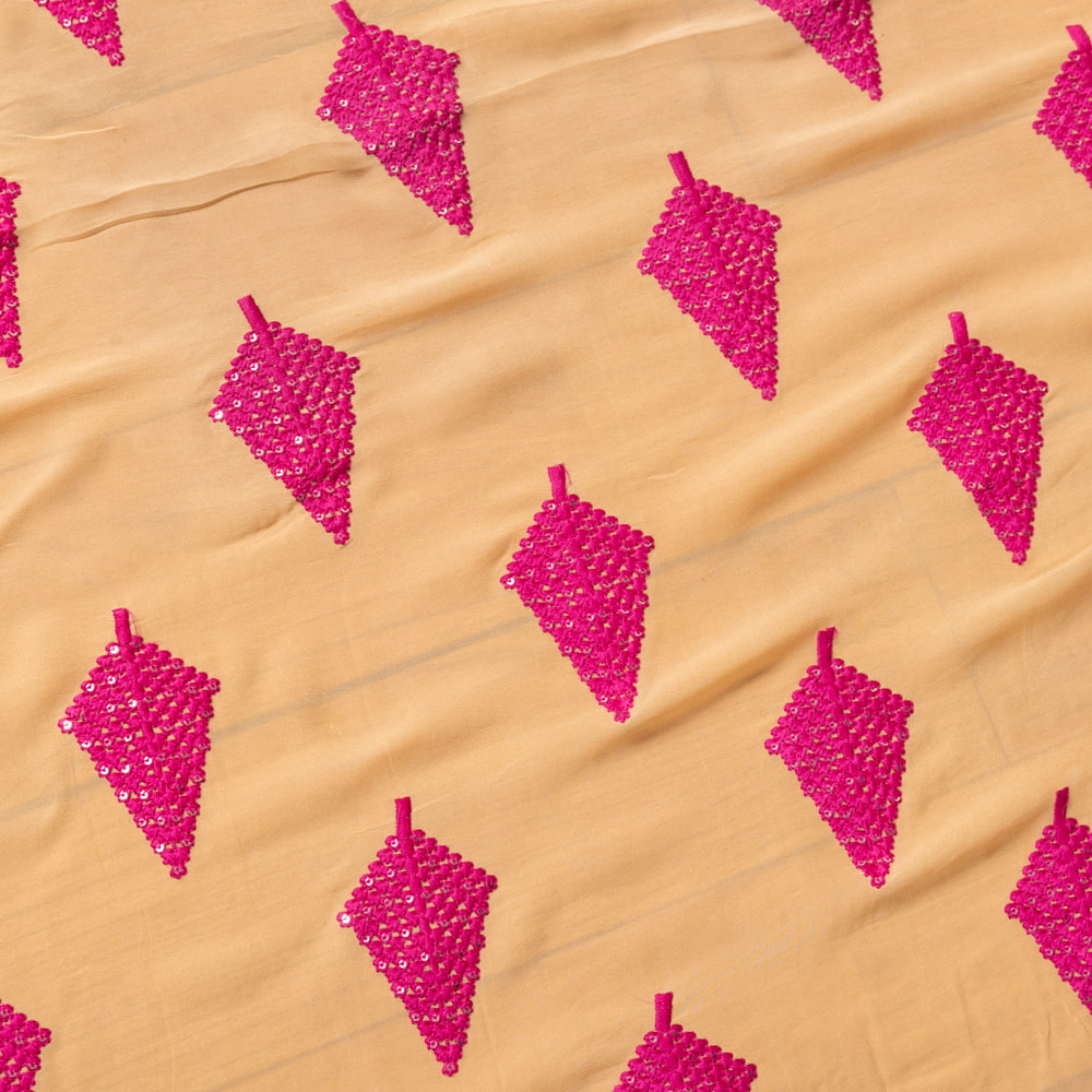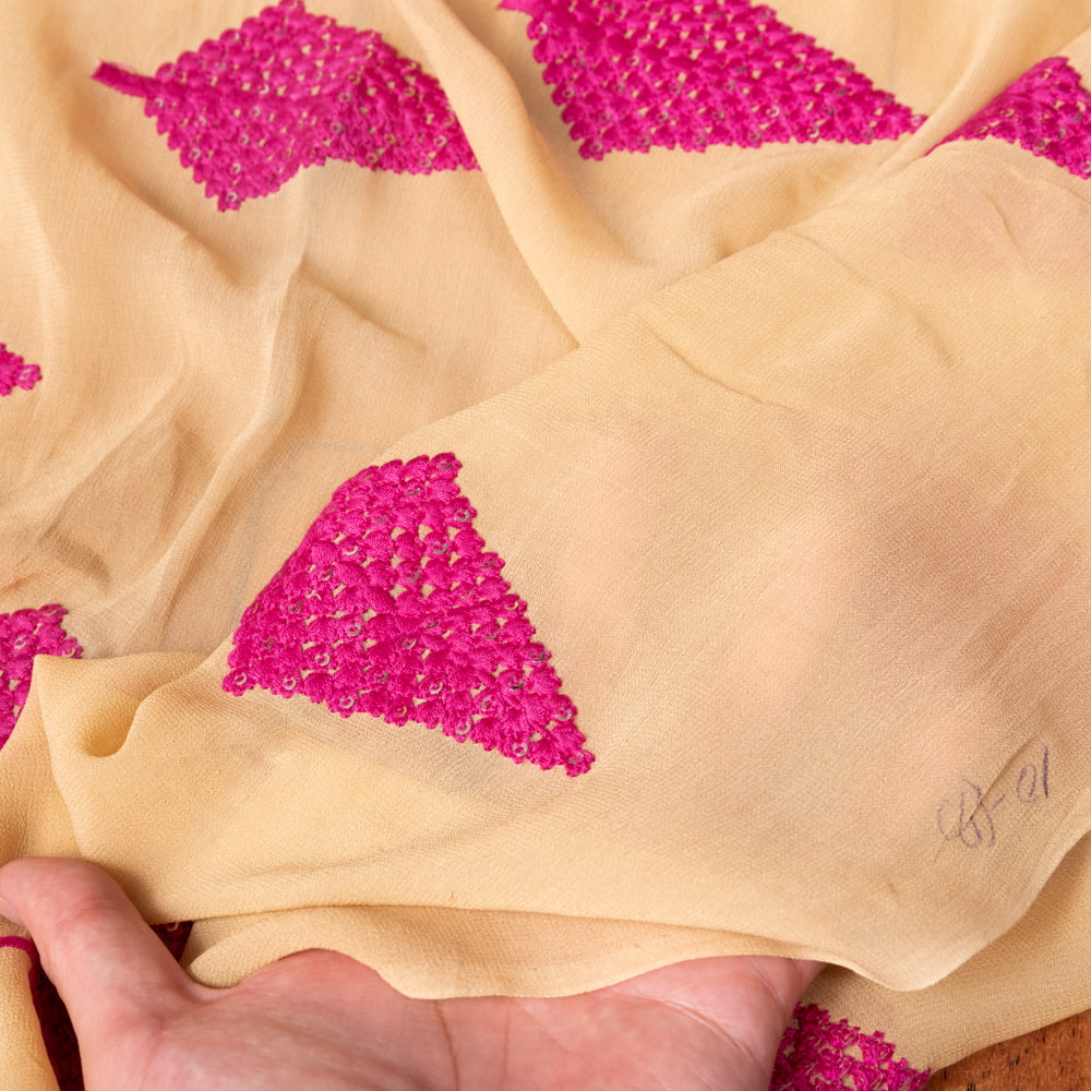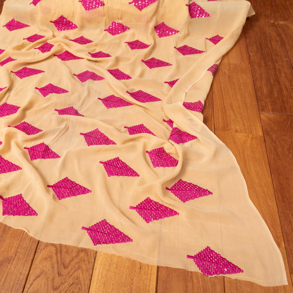 〔1m単位切り売り〕インドのスパンコール刺繍付き シフォン生地布〔約106cm〕ベージュ系 x 5個